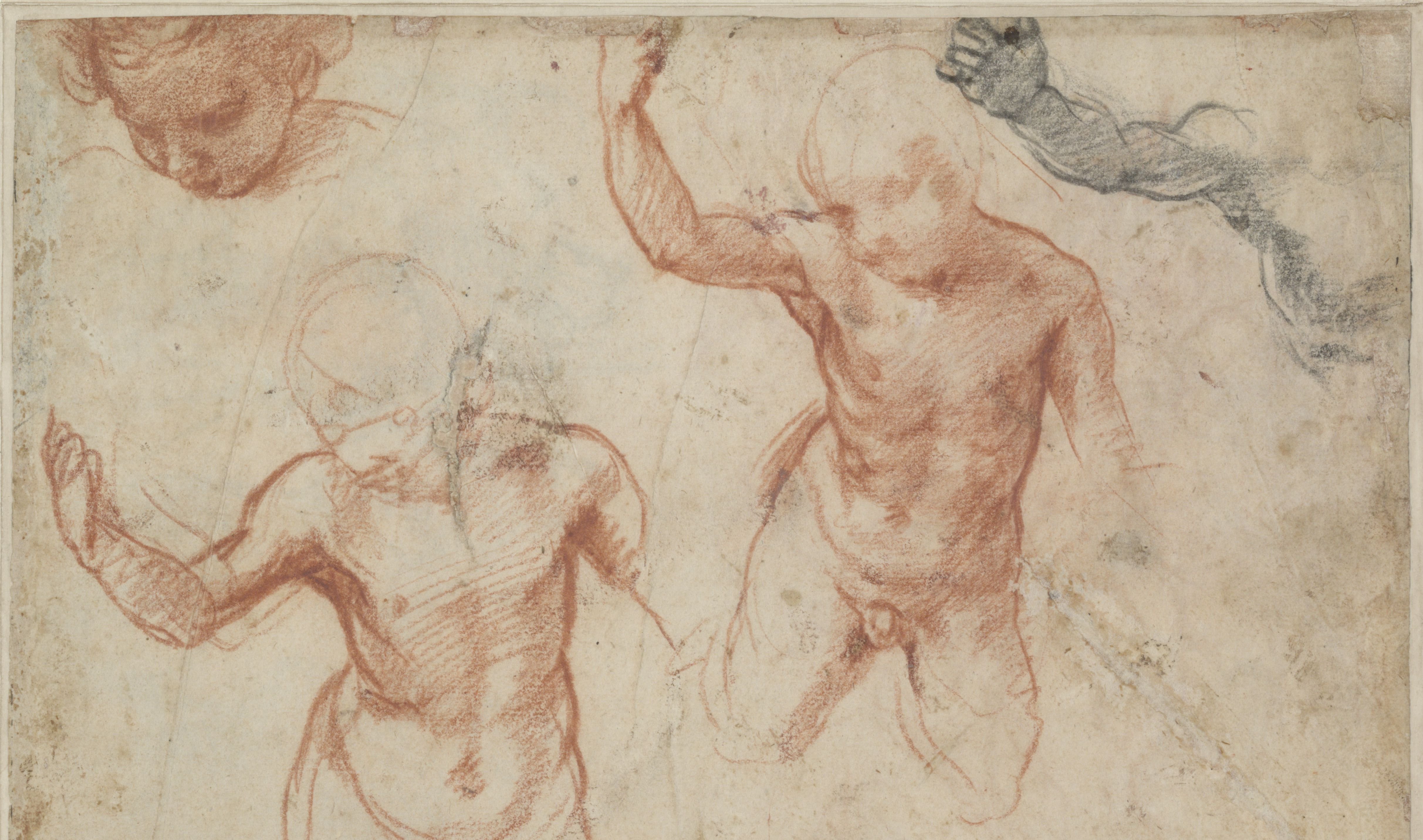 Home Online catalogues Studi & Schizzi I. Studying the Human Figure The human figure has always occupied a place of special importance in the mind of artists. During the Renaissance, when man was placed at the centre of the world by the Humanists, the representation of the human form was a major focus of artistic creation. Artists endeavoured to understand the way the body moved and functioned in order to give the protagonists in their works the most realistic and expressive character possible. The artistic treatises and academies which developed in Italy in the sixteenth century promoted the study of the human form from life, in other words, based on the observation of a live model, and this became a central workshop practice. Drawing each figure in isolation was one of the preliminary stages in the conception of a painting as much as it was an exercise for training the eye and the hand. Pentimenti, the doubling of lines, reworking and variations to all or part of a body, juxtaposed on the same support or repeated from one sheet to the other, were all signs of the draughtsman’s struggle to perfect the anatomy and to experiment with the expressive qualities of an attitude or a movement. Schizzo (i): dicono i Pittori quei leggerissimi tocchi di penna o matita, con i quali accennano i lor concetti senza dar perfezzione alle parti; il che dicono schizzare Sketch (es): the name given by painters to the very light strokes of a pen or pencil by means of which they express their ideas, without perfecting the details; they call this sketching Studio (i): termine de’ Pittori, e Scultori, col quale denominano tutti i disegni o modelli, cavati dal naturale, co’ quali si preparano a far le loro opere; poichè mediante questi, che essi chiamano studi, vengono a determinare, e perfezionare l’Idea di quella cosa, che vogliono, o con pennello, o con scarpello, rappresentare in pittura o scultura Study (ies): term used by painters and sculptors to describe the drawings or models taken from nature, with which they prepare to create their works; by means of what they name studies they are able to define and improve on the Idea of what they wish to represent, with paint brush or chisel, in painting or sculpture Filippo Baldinucci, Vocabolario Toscano dell’Arte del Disegno, Florence, 1681 1. Federico Barocci Urbino circa 1526/35 – 1612 Urbino Throughout his life, Federico Barocci followed a long and meticulous process to prepare his paintings, as described by the biographer of Italian artists Bellori. With some 1,500 to 2,000 sheets preserved, Barocci was one of the most prolific and inventive draughtsmen in the history of Italian (…) 2. Filippino Lippi Prato 1457 – 1504 Florence Filippino Lippi fixed these three young men in metalpoint, then applied white bodycolour to the first lines – although without following them precisely. The white highlights are not only there to indicate light, they also contribute to the construction of the drawing. The result is a kind of (…) 3. Mariotto Albertinelli Florence 1474 – 1515 Florence Formerly attributed to Fra Bartolommeo, this drawing is now given to Mariotto Albertinelli, his collaborator. This Florentine artist of the High Renaissance covered both sides of the sheet with figures – mainly children – in a variety of positions. Some of the postures are reminiscent of those (…) 4. Giovanni Francesco Barbieri, called Guercino Cento 1591 – 1666 Bologna The Crucifixion with Saints, painted by Guercino between 1624 and 1625 in the church of the Madonna della Ghiara in Reggio Emilia, was one of the most important commissions received by the Bolognese artist on his return from Rome. Our sheet is one of the many surviving preparatory drawings for (…) 5. Andrea del Sarto Florence 1486 – 1530 Florence Andrea del Sarto painted two Assumptions (Palazzo Pitti, Florence). The putto that supports the Virgin in both of them was prepared by Sarto first in our drawing, and then in that of the British Museum. Our sheet reads from left to right. In the first study on the left, the artist has paid no (…) 6. Federico Barocci Urbino circa 1526/35 – 1612 Urbino Federico Barocci never ceased to explore the diversity and eloquence of the human form. This double study is one of many testimonies to this. He first drew the upper kneeling figure, leafing through a book. The concise lines, the scribbled hatching and the accents in red chalk bear witness to (…) 7. Federico Barocci Urbino circa 1526/35 – 1612 Urbino This work belongs to the considerable group of 121 drawings by Barocci connected to one of his most important paintings, the Madonna del Popolo (1575-79, Uffizi, Florence). The woman represented on the left was also sketched twice on another, earlier sheet (Uffizi, Florence). Comparison of the (…) 8. Baccio Bandinelli Florence 1488/93 – 1560 Florence This drawing was executed by Baccio Bandinelli, a Florentine sculptor and goldsmith, follower of Michelangelo. Always attentive to the distribution of light and shade, he used red chalk with care, drawing clear contours and unfolding a tight network of fine, parallel hatchings. The features of (…) 9. Federico Zuccari Sant’Angelo in Vado circa 1540 – 1609 Ancona Unlike more formal official portraits, these two studies from life are strongly naturalistic. Having observed his model closely, Federico Zuccari drew Vincenzo Borghini’s features faithfully and with a firm hand: the high, balding forehead with its wrinkles, the throbbing vein on his temple, (…) 10. Giovanni Francesco Barbieri, called Guercino Cento 1591 – 1666 Bologna This double study is related to the Purification of the Virgin, a painting made by Guercino in 1654-55 for the Church of the Theatines in Ferrara. The artist first executed the more finished profile on the right, then repeated it using mostly lines in a second sketch on the left. He very subtly (…) 11. Anonymous Italian, end of the 16th century The iconography 