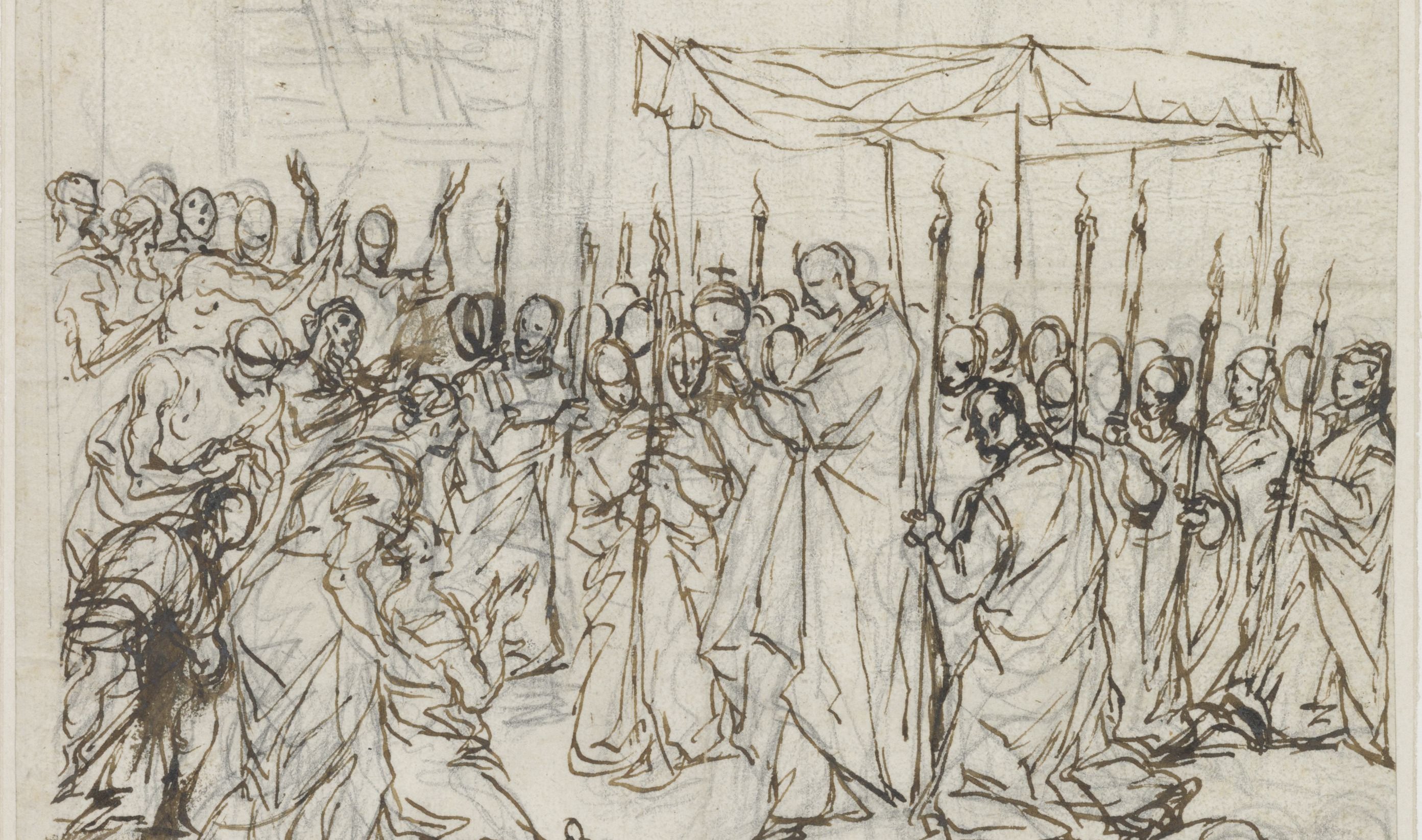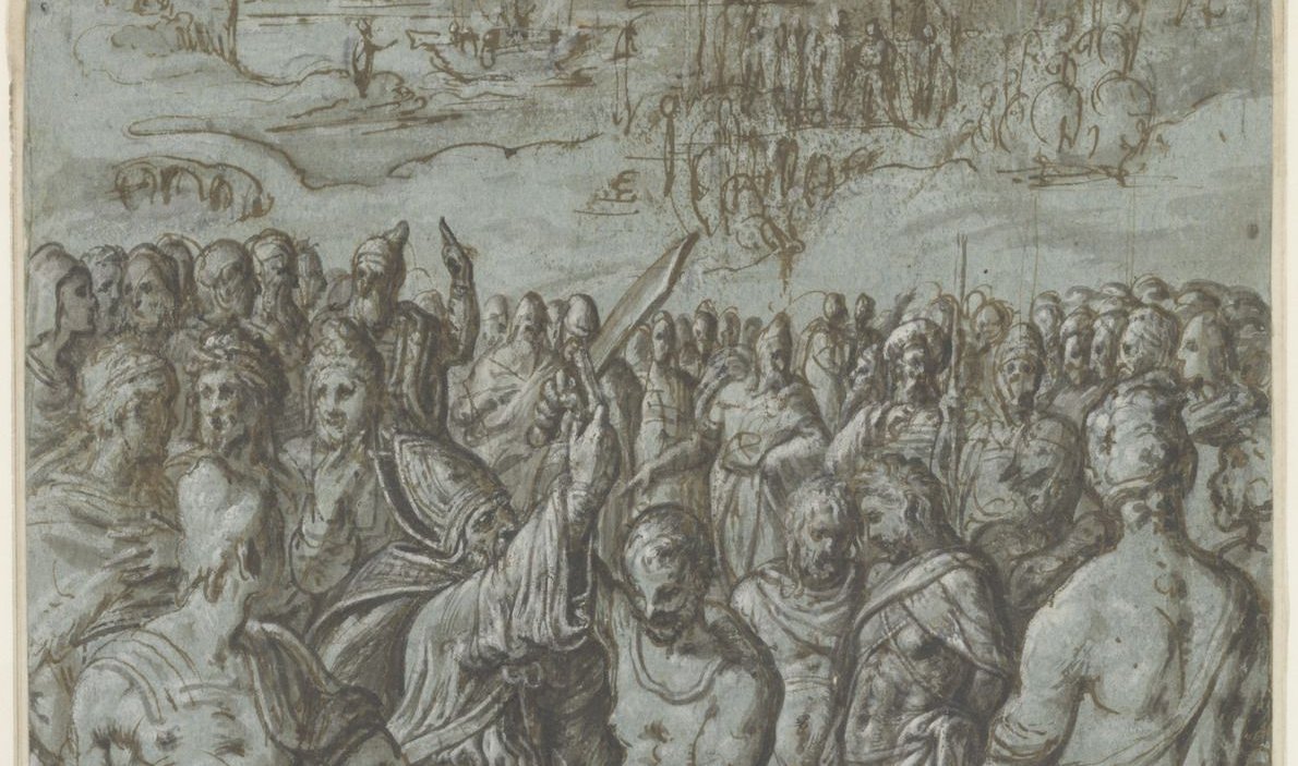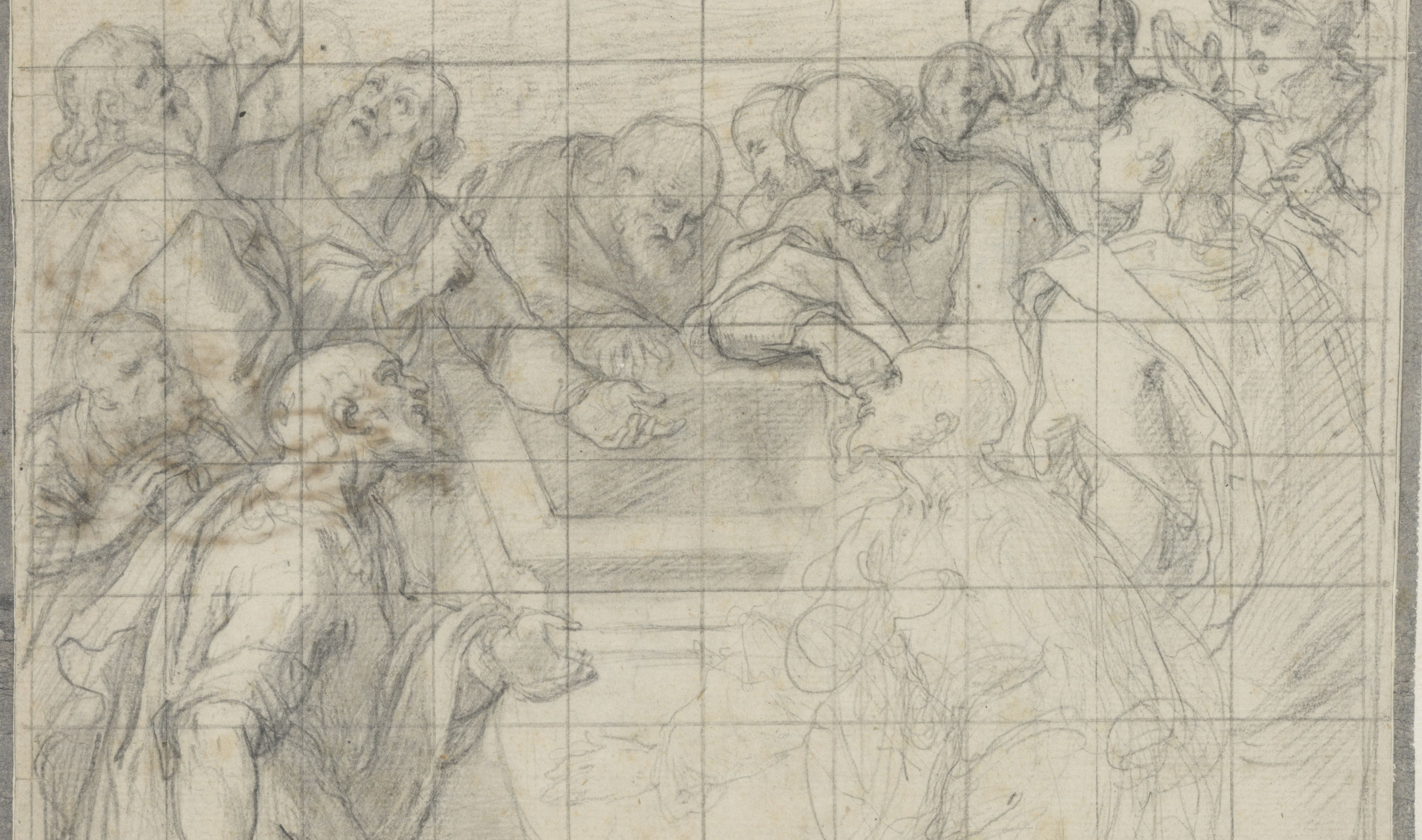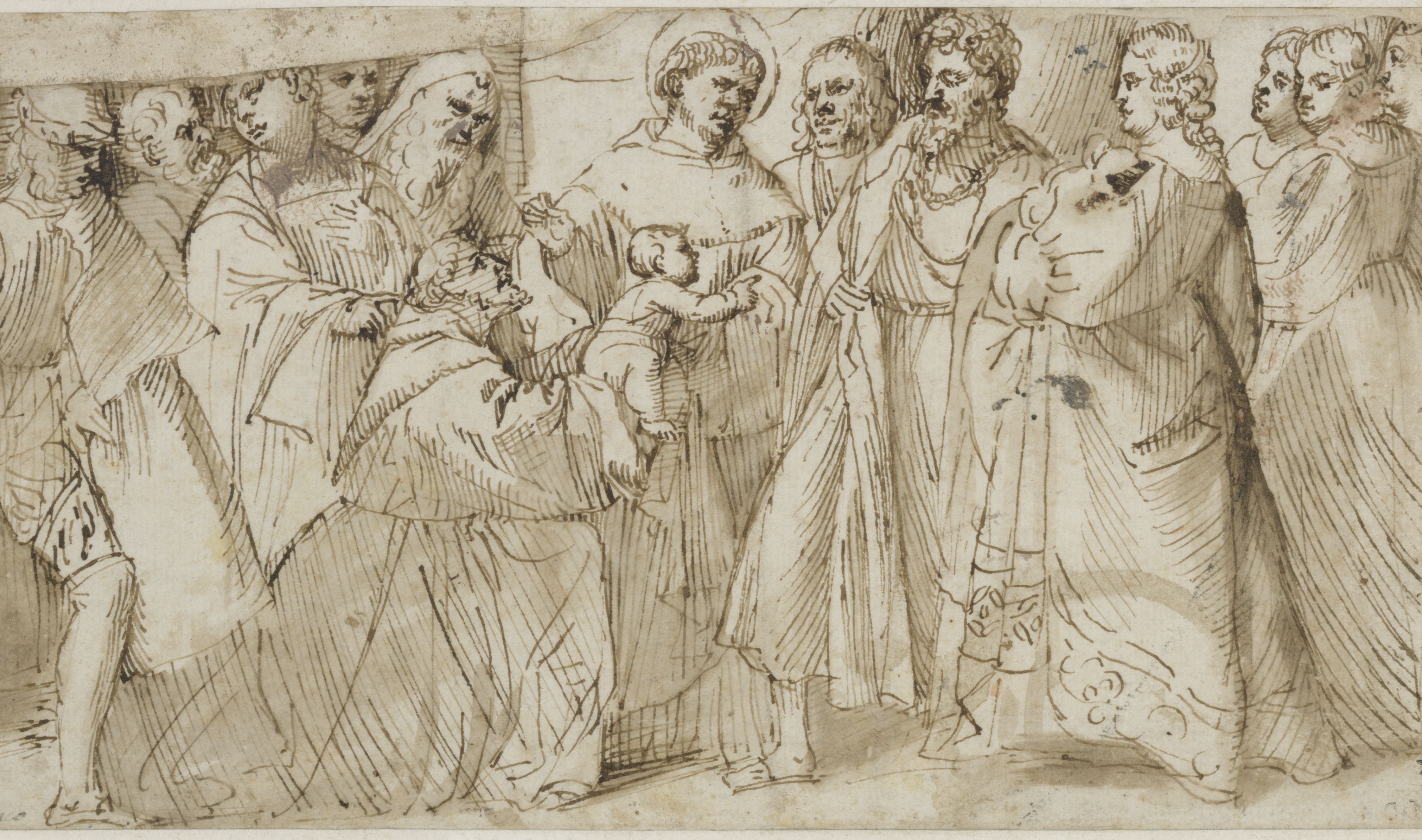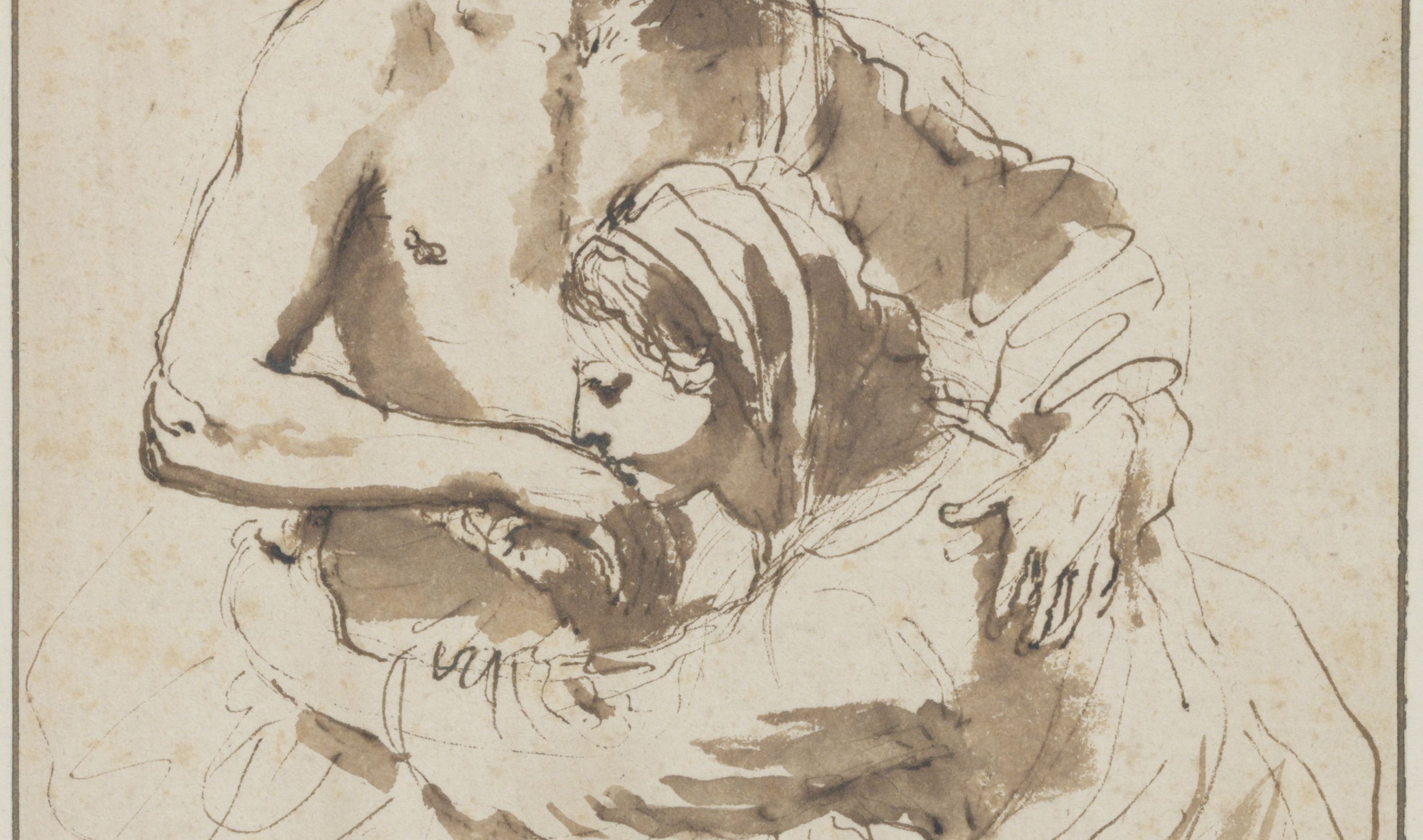 Accueil Catalogues en ligne Studi & Schizzi II. Assembler les figures Les interactions liant les personnages dans une œuvre sont un élément essentiel de la qualité du récit qui s’y déploie. Les artistes multiplièrent les dessins pour trouver des solutions formelles à la restitution, en deux dimensions, d’une relation qui se développait en réalité dans l’espace. Grâce à la spontanéité des esquisses, ils pouvaient tourner, rapprocher, réarranger les figures ou les observer sous différents angles, pour évoquer la dynamique et la diversité des réactions au sein d’un groupe ou la multitude presque abstraite d’une foule.L’iconographie de la Vierge à l’Enfant, très largement déclinée dans l’art italien de cette époque, était propice à l’examen des contacts physiques ou platoniques qui pouvaient lier deux figures. Dans ces études, l’expressivité des gestes et des regards permettait au dessinateur d’explorer le caractère intime ou dévotionnel de la relation qui unissait Marie et son enfant, et qui conférait à l’œuvre l’atmosphère spirituelle désirée. E da cio’ nasce l’invenzione, la quale fa mettere insieme in istoria le figure a quattro, a sei, a dieci, a venti, talmente ch’e’ si viene a formare le battagle e l’altre cose grandi dell’arte. À partir de là, [l’artiste] sera capable d’inventer, c’est-à-dire de composer des scènes en assemblant quatre, six, dix, vingt figures ou plus, jusqu’à représenter des batailles ou d’autres grands sujets de l’art. Giorgio Vasari, Le Vite de’ più eccellenti pittori, scultori, e architettori, Florence, 1550 36. Girolamo Genga Urbino vers 1476 – 1551 Urbino Cette étude est préparatoire au Mariage mystique de sainte Catherine (Galleria Nazionale di Palazzo Barberini, Rome), un tableau qui trahit l’influence de l’art de Raphaël, que Genga côtoya dans l’atelier de Perugino. Dans notre feuille, Genga se montra particulièrement attentif à la spatialité (…) 37. Suiveur de Pietro Vannucci, dit Perugino Castello della Pieve 1446/1447 – 1523 Fontignano Cette page réunit les fragments de deux feuilles d’études pour des Madones, assemblés par un collectionneur sans doute au XVIIIe siècle. Le dessinateur, se désintéressant de l’exactitude anatomique des figures, se concentra davantage sur la manière de représenter leur relation. Il fit varier (…) 38. Giovanni di Pietro, dit Lo Spagna Perugia vers 1450 – 1528 Spoleto Les mains jointes en prière, la Vierge couve du regard l’enfant Jésus allongé sur ses genoux. Son geste souligne le caractère sacré de cette étude, sans doute préparatoire à une commande religieuse, mais il n’enlève rien à l’affection perceptible à travers l’échange tendre des regards. Le visage (…) 39. Battista Franco, dit Semolei Venise vers 1498/1510 – 1561 Venise Dessinateur talentueux, Battista Franco développa un style expressif, caractérisé par une ligne fine et bouclée qui ne semble jamais s’interrompre. Dans la feuille de la Fondation Custodia, les formes et les figures naissent de l’enchevêtrement de ces volutes. Franco accentua les traits des (…) 40. Lorenzo Sabatini Bologne vers 1530 – 1576 Rome Le premier tracé à la pierre noire qui transparaît encore sous la sanguine permit à Sabatini de mettre en place son dessin, qu’il rehaussa ensuite de lavis et de gouache blanche. Il porta un grand soin à la réalisation de cette Vierge à l’Enfant, qu’il mit au carreau pour pouvoir la transférer (…) 41. Domenico Zampieri, dit Domenichino Bologne 1581 – 1641 Naples Notre feuille et celle de Darmstadt sont chacune liées à deux grandes compositions religieuses peintes par Domenichino, respectivement à San Lorenzo in Miranda et au Palazzo Barberini à Rome. Elles appartiennent à la même typologie des études de figures à la pierre noire sur papier gris-bleu qui (…) 42. Pietro da Cortona Cortona 1596 – 1669 Rome Pietro da Cortona fut l’un des grands représentants de l’art baroque italien. Il développa une manière graphique diligente comme en témoignent notre dessin ou celui de Würzburg, tous deux préparatoires au tableau du Repos pendant la fuite en Égypte (1638, église de Walterskirchen, Autriche). (…) 43. Giovanni Benedetto Castiglione Gênes 1609 – 1664 Mantoue Castiglione fut l’une des personnalités les plus originales de l’art baroque italien. Inspiré sans doute par les esquisses de Rubens et Van Dyck qui furent actifs à Gênes au début du XVIIe siècle, il élabora une technique de dessin à l’huile sur papier tout à fait singulière. De sa facture vive (…) 44. Giovanni Francesco Barbieri, dit Guercino Cento 1591 – 1666 Bologne Cette étude est une première pensée pour Le Christ ressuscité apparaissant à la Vierge (1628-1630, Pinacoteca Civica, Cento), un des tableaux les plus majestueux de Guercino. L’artiste dessina les figures à mi-corps, délaissant ici les amples drapés qui jouèrent un rôle visuel très fort dans la (…) 45. Alessandro Maganza Vicenza 1556 – après 1632 Vicenza Sur une esquisse à la pierre noire, Alessandro Maganza dessina de sa plume vive et fluide ces deux figures. Contrairement à l’iconographie plus courante du Noli me tangere où le Christ repousse Madeleine, ici il attire à lui une sainte agenouillée. L’habit de nonne n’est pas suffisamment précis (…) 46. Francesco Mazzuola, dit Parmigianino Parme 1503 – 1540 Casalmaggiore Cette œuvre de Parmigianino compte parmi ses dessins les plus admirés et fut reproduite en gravure dès le XVIIIe siècle. L’artiste chercha vraisemblablement à rapprocher très étroitement les deux personnages, allant jusqu’à contracter l’espace pourtant nécessaire aux jambes de l’homme qui (…) 47. Domenico Beccafumi Valdibiena 1486 – 1551 Sienne Ce dessin magistral de Domenico Beccafumi s’apparente, par son sujet et son exécution, aux gravures