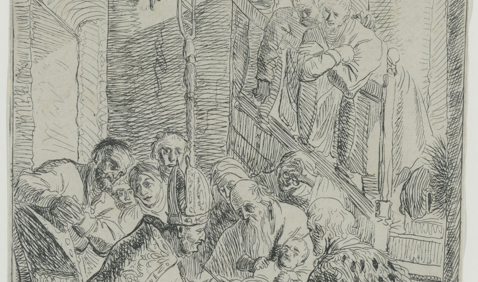 Accueil Catalogues en ligne Un œil passionné. Douze ans d’acquisitions de Ger Luijten III. Estampes anciennes 53. Melchior Lorck Flensburg 1526/1527 – après 1583 Copenhague Ce portrait posthume d’Albrecht Dürer (1471–1528), gravé par Melchior Lorck pendant ses années de formation, témoigne de son admiration pour le maître de Nuremberg. Lorck le réalisa en 1550, alors qu’il travailla brièvement dans cette ville, l’un des plus importants centres pour la gravure et (…) 54. Allemagne, XVIe siècle Cette gravure est extrêmement rare, seuls trois autres exemplaires en sont connus. Aux XVIe et XVIIe siècles, une part significative des estampes était destinée à être accrochée au mur, encadrée ou simplement marouflée sur un support en bois ou en textile. Soumises à la lumière et à l’humidité, (…) 55. Andrea Meldolla, dit il Schiavone Zara, Croatie vers 1510 – 1563 Venise Andrea Meldolla, issu d’une famille d’origine émilienne, naquit à Zara (Zadar) sur la côte dalmate, alors sous juridiction vénitienne. Vers 1530, il se trouvait à Venise, où on le surnommait il Schiavone, c’est à dire « le Slave ». Sa formation artistique reste inconnue et il est possible qu’il (…) 56. Artiste français ou italien On sait très peu de choses de cette estampe, qui n’est connue qu’en deux autres épreuves. Adam von Bartsch décrit l’impression conservée à Vienne comme d’après un projet « que quelques-uns attribuent à Titien ». Cette idée n’a pas tenu. Une attribution à l’école italienne est également ouverte à (…) 57. Federico Barocci Urbino 1535 – 1612 Urbino L’œuvre gravé de Federico Barocci consiste en seulement quatre estampes, mais celles-ci ont été d’une grande importance pour l’histoire de la gravure en Italie. L’artiste était parmi les premiers à capitaliser sur les résultats obtenus par Parmigianino (1503–1540) et Schiavone (vers 1510–1563) (…) 58. Anonyme, d’après Marten van Cleve Anvers 1527 – 1581 Anvers En 2019, Ger Luijten réussit à enrichir le fonds de la Fondation Custodia de la même rare série d’estampes qu’il avait déjà acquise pour le Rijksmuseum d’Amsterdam en 2001. La série fut créée vers 1570 et constitue un excellent exemple de représentations de plaisanteries sexuelles ambiguës, (…) 59. Remigius Hogenberg (d’après Hans Bol) Malines vers 1536 – 1589 Londres Cette scène avec une élégante compagnie s’inscrit dans la tradition des miniatures calendaires illustrant le printemps ou le mois de mai. Un château de plaisance est élevé au bord de l’étang, avec au milieu un labyrinthe établi sur une île de plan circulaire. Le graveur a traité avec un soin (…) 60. Jan Saenredam Zaandam vers 1565 – 1607 Assendelft Élève d’Hendrick Goltzius (1558–1617), père de Pieter Jansz. Saenredam (1597–1665), graveur de Cornelis Cornelisz. van Haarlem (1562–1638) ou encore de Karel van Mander (1548–1609), Jan Saenredam réalisa aussi des gravures de sa propre invention, telles que cette série des Vierges folles et des (…) 61. Willem van Nieulandt II Anvers 1584 – 1635 Amsterdam Comme le déclare l’inscription en haut, ce grand panorama du Tibre à Rome avec l’île Tibérine et trois ponts antiques fut dédié par le dessinateur et graveur Willem van Nieulandt II à son ami Johannes de Cock (avant 1591–vers 1625/1626), autre peintre de paysages actif à Anvers. Arrivé à Rome en (…) 62. Raphaël Sadeler I (d’après Joos van Winghe) Anvers 1561 – vers 1632 Munich Cette gravure représente des personnifications et leurs attributs symbolisant les mauvais comportements des personnes qui vivent dans l’opulence. Un roi richement vêtu, gardant son argent dans un grand coffre, symbolise la Richesse. Ses oreilles d’âne, symbole de stupidité, réfèrent au roi Midas (…) 63. Gillis van Breen I (d’après Cornelis IJsbrantsz. Kussens) ? 1560 – 1602/1612 Haarlem Parmi les nombreuses estampes dont Ger Luijten a enrichi la collection de la Fondation Custodia, un certain nombre lui étaient particulièrement chères car il en avait présenté les exemplaires du Rijksmuseum dans son Mirror of Everyday Life (« Miroir du quotidien ») dédié aux gravures de genre (…) 64. Pieter Serwouters (d’après David Vinckboons I) Anvers 1586 – 1657 Amsterdam Si cette joyeuse assemblée devant une auberge évoque au premier regard une fête paysanne de Pieter Brueghel l’Ancien (1526–1569), elle se révèle être une cour des Miracles. Les protagonistes qui dansent, mangent, boivent ou se soûlent, sont tous vêtus de haillons rapiécés. Les trois miséreux (…) 65. Karel du Jardin Amsterdam 1626 – 1678 Venise Les cinquante-deux estampes connues de Karel du Jardin ont probablement toutes été créées entre 1652 et 1660, pendant et peu après le premier voyage de l’artiste en Italie. Celles qui figurent des animaux semblent confirmer l’information de Arnold Houbraken, selon laquelle Du Jardin aurait été (…) 66. Wenceslaus Hollar Prague 1607 – 1677 Londres D’une série de quarante-sept coquillages répartis sur trente-neuf feuilles, la Fondation Custodia possédait déjà une Volute armée, acquise en 1963. Ce Trocha nacrier appartient lui aussi à cette suite aussi peu répandue qu’énigmatique réalisée par Wenceslaus Hollar autour des années 1646. (…) 67. Rembrandt Harmensz. van Rijn Leyde 1606 – 1669 Amsterdam Il est toujours émouvant de contempler l’œuvre inaugurale d’un grand maître. De fait, voici la première estampe réalisée par un virtuose incontesté en la matière, Rembrandt. Il s’agit qui plus est du troisième et dernier état, soit celui qui est supposé être le plus parfait sinon le plus achevé. (…) 68. Wallerant Vaillant Lille 1623 – 1677 Amsterdam Dans sa Teutsche Academie (1675), l’artiste-biographe Joachim von Sandrart (1606–1688) décrivit Wallerant Vaillant comme le maître par
