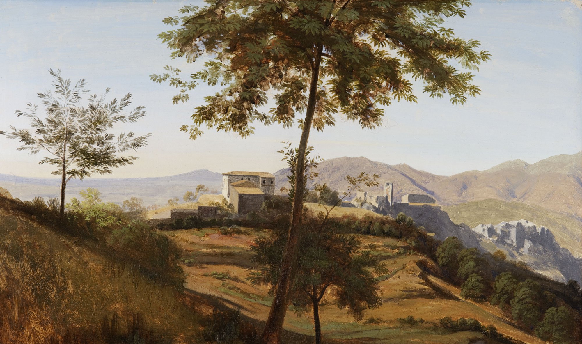 Home Online catalogues True to Nature. Open-air Painting 1780-1870 V. The Roman Campagna 72. Jules Coignet Paris 1798 – 1860 Paris During his first stay in Italy from 1824-27, Coignet was a member of the circle of plein air painters which included Corot. This view of Lake Nemi was painted on a second trip in 1843. Located in the Lazio region, some 30 km south of Rome, the small circular volcanic lake was known in antiquity (…) 73. Jean-Joseph-Xavier Bidauld Carpentras 1758 – 1846 Montmorency Having arrived in Italy in 1785, Bidauld was a true pioneer of plein air painting and helped establish the sketching routes that were to be used by artists in the decades that followed, making excursions throughout the Roman Campagna, the hill towns of Subiaco, Narni, Civita Castellana, and (…) 74. Jean-Achille Benouville Paris 1815 – 1891 Paris A student of Leon Cogniet (1794–1880), Jean-Achille Benouville first visited Italy in 1837. He was a friend of Corot and the two artists shared a studio in Rome in 1843. Benouville would go on to win the Prix de Rome for historical landscape in 1845 and spend the following two decades in Italy. (…) 75. Achille-Etna Michallon Paris 1796 – 1822 Paris As the pupil of Valenciennes and teacher of Corot, Michallon is a crucial link in the story of plein air painting, despite his untimely death at the age of twenty-five. In 1817, he won the inaugural Prix de Rome for historical landscape and lived in Rome for three years between 1818-21. In the (…) 76. Leon Fleury Paris 1804 – 1858 Paris Like Caruelle d’Aligny (cat. 77), Fleury would also benefit from Corot’s experiments en plein air and accompany him on sketching expeditions. Their technique and style were so similar that their oil sketches were confused by contemporaries. He arrived in Rome in 1827, after studying with Bertin (…) 77. Théodore Caruelle d’Aligny Chaumes 1798 – 1871 Lyon Caruelle d’Aligny arrived in Rome in 1822, and spent the next five years travelling all over Italy. He is joined by Corot in 1825, and the two become fast friends and work companions. The first to recognise his talent, Caruelle d’Aligny is said to have silenced a group of artists who, gathered (…) 78. Camille Corot Paris 1796 – 1875 Paris Corot set off for Italy in late 1825 and arrived in Rome by December that year. The inscription fevrier 1826, scratched into the still-wet paint in the lower right corner, confirms that this study was made entirely en plein air and makes it one of the earliest firmly dated oil sketches from his (…) 79. Johann Martin von Rohden Kassel 1778 – 1868 Rome Von Rohden studied at the Academy in Kassel, and was only seventeen when he first went to Rome. He returned in 1802 and would spend most of his life in Italy where he was instrumental in the creation of the German Academy in Rome and among the first Germans to paint out-of-doors. This view of (…) 80. Johan Thomas Lundbye Kalundborg, Denmark 1818 – 1848 Bedstedt, Denmark Born into a military family, Lundbye studied at the Academy of Fine Arts in Copenhagen, where he was strongly influenced by the slightly older Eckersberg students and their poetic naturalism. He was a pioneer of the National Romantic landscape movement, which privileged views of the Danish (…) 81. Jean-Joseph-Xavier Bidauld Carpentras 1758 – 1846 Montmorency In this study, Bidauld demonstrates his obvious understanding of how light plays across a mountainous landscape. The exceptional clarity of detail he is able to achieve is the result of his fastidious approach to working out-of-doors, which stands in stark contrast to the rapid, sketchy studies (…) 82. Franz Ludwig Catel, attributed to Berlin 1778 – 1856 Rome The Ponte Nomentano crosses the river Aniene to the northeast of Rome, interrupting an otherwise bare landscape and making it a particularly appealing motif for many painters from Joseph Wright of Derby (1734–1797) to Corot. In this study of the bridge set against the purple Sabine hills, the (…) 83. Michel Dumas Lyon 1812 – 1885 Lyon Michel Dumas trained at the École des Beaux-Arts in Lyon, and moved to Paris in 1834 to join the studio of Ingres shortly before the master left to take up the post of director of the French Academy in Rome. Dumas would eventually join Ingres in Rome in 1838, after working on the decoration of (…)