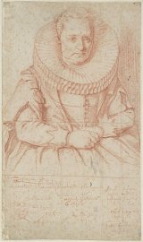 The ferry service between the Zuiderzee ports of Amsterdam and Harlingen was introduced in the mid-sixteenth century. Every day, sailing ships known as beurtschepen travelled between the provinces of Holland and Friesland carrying passengers and light goods. According to this drawing’s incriptions, on 17 May 1616, ‘Elisabeta de Lendelee’ (depicted on the recto of the sheet) and ‘Jonff Maria Hessels’ (verso) sailed on one of these ferries. While the girl lies down, perhaps because she has been rocked to sleep by the motion of the waves or because she feels seasick,1 and the woman (looking rather concerned) stares straight ahead, the artist seized the opportunity to capture them. They are both drawn in great detail in red chalk. The colour notes and the sketch of the coat of arms in the drawing of the woman suggest that it was intended as a preliminary study for a painted portrait. The fact that there was a connection between the two women, and that they were not fellow travellers by chance, has never been noticed before. Marie (or Maria) Hessels was the daughter of the Ghent lawyer Jacob Hessels (1505-1585) and his second wife Jetz van Hoytema (d. 1572).2 She married Josse de Beer (d. 1605), who was the lord of Lendelede. The title of Maria’s first husband might explain the girl’s ‘surname’, and it is therefore conceivable that mother and daughter are portrayed here. It appears that the couple had three children: Jean, Clémence and Isabeau, which may be a variant of the name Elisabeth.3 Both families, the Hessels and the De Beers, had come from Southwest Flanders. We do not know what brought the two women to the Northern provinces of the Netherlands. One possible explanation might be found in ‘Jan de Cat’ who was apparently Maria Hessels’s second husband and, according to the inscription, from whom she had been widowed by 1616. The reference to the port of Harlingen in the inscription may have led to attempts in the past to attribute this sheet to a Frisian portrait painter. Wybrand de Geest (1592-1661),4 who came from Leeuwarden, was long regarded as the maker of the sheet. While this cannot be ruled out on the basis of stylistic characteristics,5 in 1616 the artist was in Aix-en-Provence.6 Like its previous owner, Hofstede de Groot, Frits Lugt consequently regarded this remarkable drawing as an anonymous work. MvS 1From the description in Grimaldi’s sale catalogue: ‘souffrant apparemment de mal de mer’ (she seems to be suffering from sea sickness). 2L.J.J. van der Vynckt, Des Troubles des Pays-Bas II, 1822, pp. 39-40 (there is a reference to an epitaph with information about the family in St Michael’s Church in Ghent); Marcus van Vaernewyck, De historie van Belgis of Kronyke der Nederlandse Oudheyd, 1829, pp. 54-57. 3https://www.genealogieonline.nl/genealogy-harssema/I242102.php 4See provenance. 5See, for example, the drawing in the collection of the Rijksmuseum, Amsterdam, inv. no. RP-T-1960-1. 6C. Hofstede de Groot, ‘Het vriendenalbum van Wibrand Symonszoon de Geest’, Oud-Holland 7, 1889, pp. 235-40; Piet Bakker, De Friese schilderkunst in de Gouden Eeuw, Zwolle (Waanders) 2008, pp. 183 and 186.