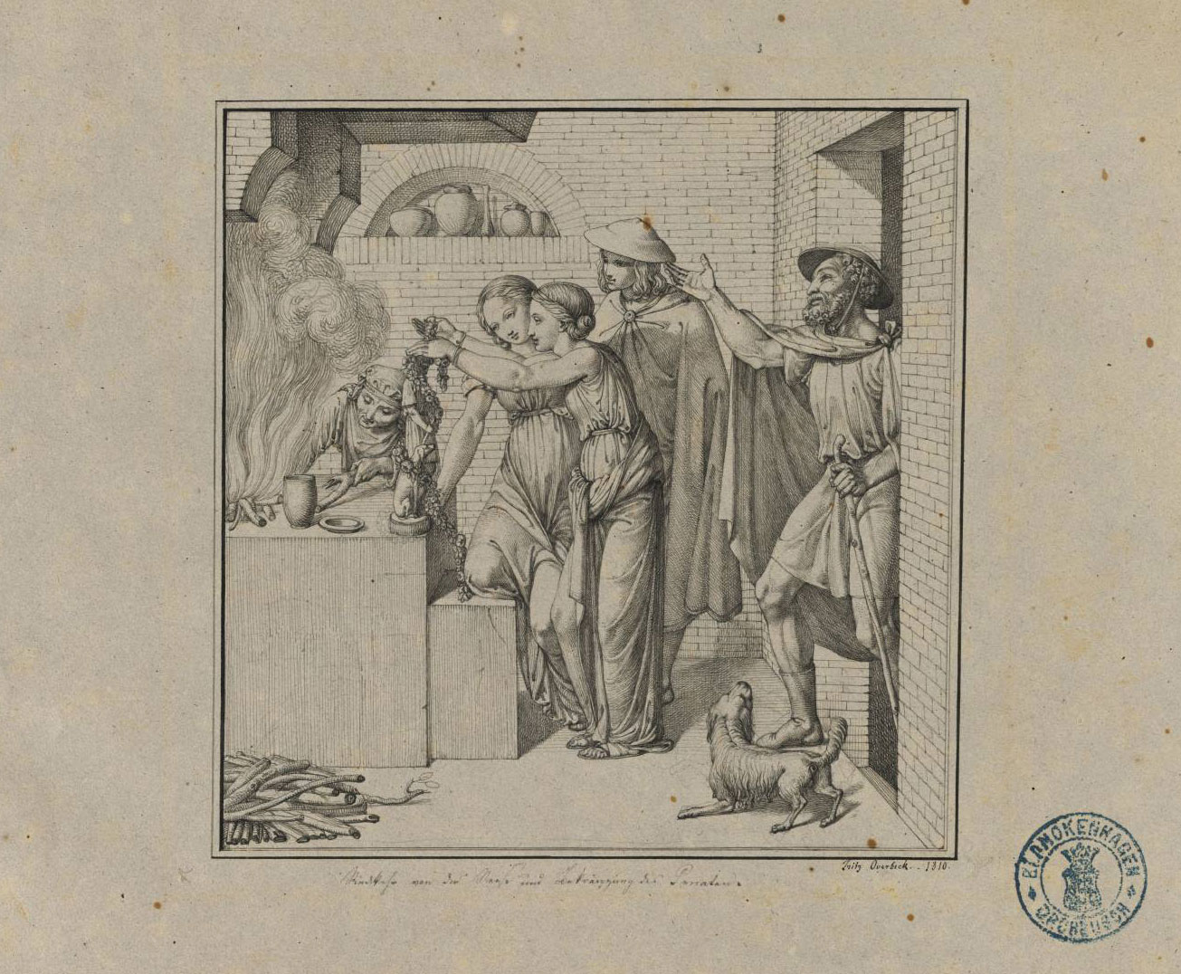 The Discovery of the Collection of Prints and Drawings of Wilhelm von Blanckenhagen, of Riga Christiane Lukatis, chief curator in the Department of Graphic Art at the Museumlandschaft Hessen-Kassel, has recently drawn our attention to the collector’s mark with the name of Blanckenhagen (fig. 1): it does not figure among the marks listed by Frits Lugt, nor among those located more recently, and this has allowed us to discover a hitherto unknown collection. Its distant location, on the fringes of Europe – Riga in Latvia – has no doubt contributed to our knowing nothing whatsoever about it. 1. Mark of Wilhelm von Blanckenhagen Read more Credit for the discovery of the stamp and of the activity of the collector Wilhelm von Blanckenhagen (1762-1840), is due to the museum in Kassel which, in 2019, acquired the remarkable Album amicorum, and at the same time a donation of 276 prints, all marked with the same stamp. Further research has revealed that the mark was not conceived by the collector himself but by his descendants through the Drobbusch line. Around the family coat of arms, both the name Blanckenhagen and the name of the Drobbusch estate, now Drabeši mõis, can be clearly seen. In September 2020, this mark was integrated into our database of collectors’ marks on prints and drawings with the number Lugt 5675. By chance, the descendants had kept the stamp itself, signed by the maker Kretzer, and produced for these works, which had not yet been stamped (fig. 2). 2. Wilhelm von Blanckenhagen’s stamp signed by the manufacturer Kretzer Wilhelm von Blanckenhagen, landowner and farmer, was born into a wealthy family in Riga; he put together his Album amicorum during the year 1810 in Rome, where he lived with his family in the villa Aldobrandini for nearly a year. This stay in Rome was not in fact his first: before he began his studies at the universities of Leyden and Leipzig, he had previously undertaken earlier trips to Italy, in 1780 and 1781, as well as to France and England. He is quoted in the Journal of Johann Georg Wille (1715-1808) kept in the collection of the Fondation Custodia (inv. 2005-A.688, pp. 183-184), which in February 1781, mentions the traveller’s return from Italy in the company of his tutor, Christoph Gottlob Heinrich (1748-1810). In March, Wille notes the following details: ‘Messrs Heinrich and von Blanckenhagen took their leave. They are going hence to England and thence to Germany. I hold them in the greatest esteem.’ During his extensive travels, Wilhelm von Blanckenhagen purchased paintings, prints and antiques, particularly in Rome. Part of his collection was acquired during his lifetime by the museum of the University of Dorpat (Tartu), but another part remained in the family. 3. Drawing by Johann Friedrich Overbeck in the Album amicorum of Wilhelm von Blanckenhagen, 1810 The 32 drawings in the Album amicorum are by the hands of German and Danish artists whom Blanckenhagen had met through the good offices of Caroline von Humboldt (1766-1829), wife of the scholar and diplomat Wilhelm von Humboldt (1767-1835). The album contains unpublished drawings by the painters Joseph Anton Koch, Johann Friedrich Overbeck (fig. 3), Franz Pforr, Christian Daniel Rauch, and also by the brothers Franz and Johannes Riepenhausen, by Christian Gottlieb Schick and the sculptor Bertel Thorvaldsen. All the drawings in the album are on show in the exhibition Treffpunkt Rom 1810. Die Geschichte eines Künstlerstammbuchs, held at Schloss Wilhemshöhe, Kassel, from 23 October 2020 to 24 January 2021; the handsome catalogue published with the exhibition will allow visitors to expand on this and other discoveries. Peter Fuhring