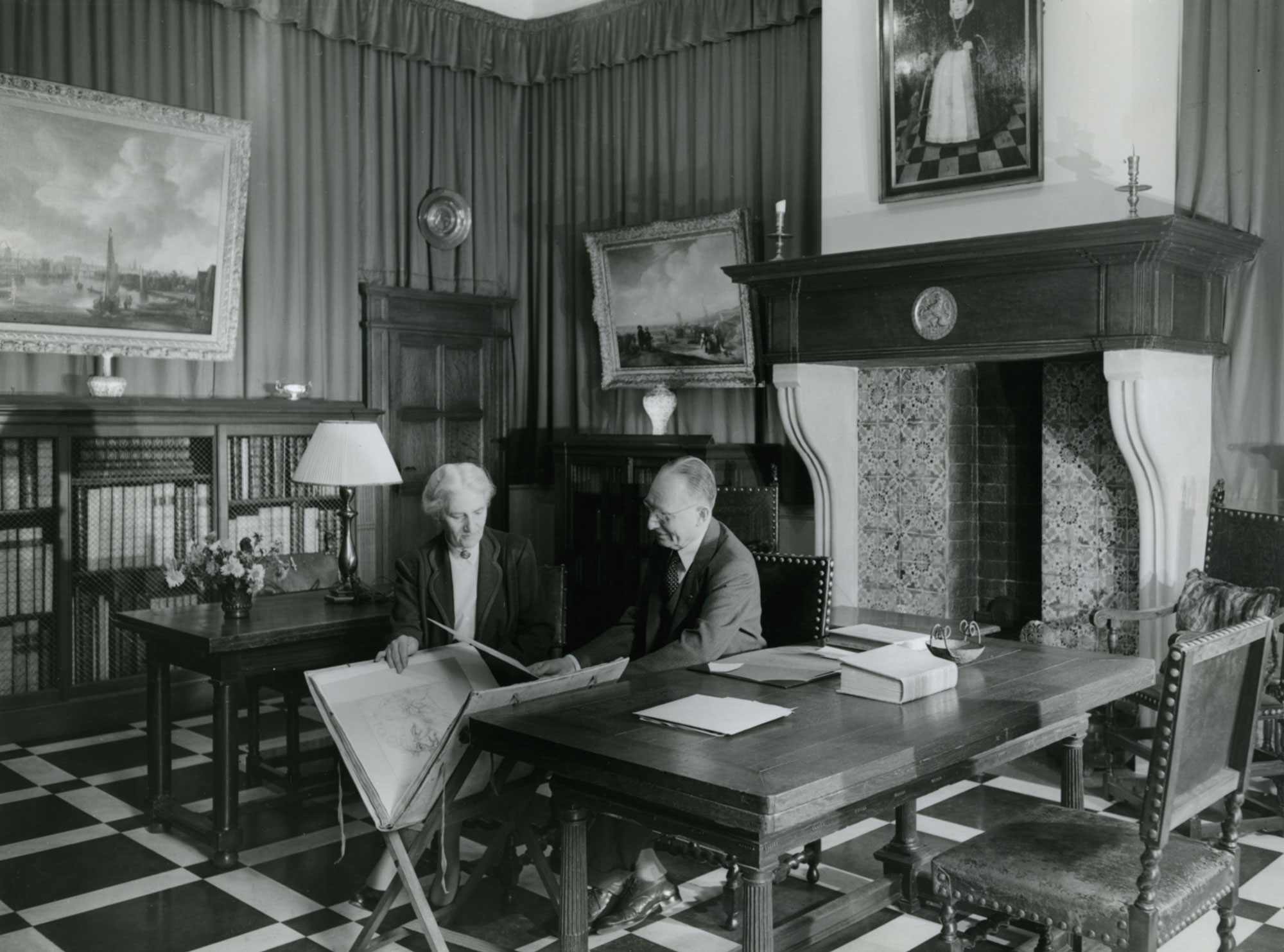 Frits Lugt (1884-1970) La Fondation Custodia fut créée en 1947 par le collectionneur et connoisseur néerlandais Frits Lugt et son épouse Jacoba (To) Lugt-Klever (1888-1969). Frits Lugt Frederik Johannes Lugt, né à Amsterdam en 1884, avait dans le sang le goût de collectionner et de cataloguer. À huit ans, Frits, comme on l’appelait, rédigea celui de ses ‘trésors’ – Museum Lugtius, geopend als de directeur thuis is (ouvert quand le directeur est à la maison) – qui comprenait, entre autres choses, certains coquillages assez rares. À partir de dix ans, il consacra tout son temps libre au Rijksmuseum d’Amsterdam, ou il examinait attentivement les œuvres, dont il faisait des copies. Il obtint aussi, non sans peine, d’avoir accès au Cabinet des Dessins, ou les conservateurs le regardaient d’un œil soupçonneux. Le jeune Frits devint un fanatique et passa dès lors tous ses loisirs dans la salle de consultation. À son grand étonnement, il constata qu’il n’existait pas d’inventaire des dessins hollandais et décida sans complexe de l’entreprendre lui-même, décrivant soigneusement chaque feuille, recherchant les provenances, copiant les signatures et rédigeant une courte biographie pour chaque artiste. À la fin de 1899, il en était arrivé à Jordaens et avait répertorié 955 dessins. La biographie de Rembrandt par le jeune Frits Lugt, 1899 Rembrandt, qui avait fait l’objet d’une exposition capitale en 1898, exerçait une fascination particulière sur Lugt : un an plus tard, il surprenait sa famille et ses amis par une biographie détaillée de l’artiste, incluant le résultat des travaux les plus récents. Dessinateur habile, il l’avait illustrée de ses propres croquis. La biographie de Rembrandt allait changer du tout au tout sa vie d’adolescent. Grâce à un parent, Lugt se vit offrir un poste dans une firme réputée de ventes publiques, celle de Frederik Muller à Amsterdam. Il interrompit du même coup ses études secondaires. Chez Muller, il passa l’essentiel de son temps à établir les catalogues de vente, ce qui lui permit d’exercer son œil pénétrant, et de développer son extraordinaire mémoire visuelle. Le plus important était de regarder, de regarder et de comparer, afin d’aborder l’art de façon concrète. Il ne pouvait y avoir de meilleure formation. Autodidacte, Lugt pensait que l’amour de l’œuvre d’art primait sa signification historique. Pour lui, le goût et la sensibilité étaient finalement plus nécessaires à une véritable compréhension des œuvres que le raisonnement ou les diplômes universitaires. Lugt devint un expert de réputation internationale sur l’art flamand et hollandais, doté d’un véritable ‘flair’ pour la qualité. La situation précaire de la maison Muller après qu’avait éclaté la Première Guerre mondiale obligea Lugt à la quitter en 1915. Tant qu’il y était attaché, il ne pouvait se permettre d’acquérir des œuvres pour son propre compte : il était libre désormais de faire une collection personnelle. Le couple Frits Lugt et Jacoba Klever à leur mariage, décembre 1910 Son mariage avec Jacoba Klever lui apporta une certaine indépendance financière. Tous deux formèrent un couple uni pendant près de soixante ans et avaient en commun le même amour de l’art. Lorsque ses obligations familiales le lui permettaient (ils avaient cinq enfants), Madame Lugt accompagnait son mari dans ses voyages à l’étranger et dans ses visites aux salles de vente ou aux musées. Pour créer leur collection, ils recherchèrent d’abord les dessins, les gravures et les livres anciens, dont les prix restaient raisonnables. Les peintures, surtout celles des grands maîtres, étaient trop onéreuses. À l’époque, Lugt vivait en conseillant d’autres collectionneurs et en agissant comme intermédiaire, bien que son beau-père ait toujours été prêt à l’aider. Réunir des œuvres de qualité n’était pas seulement une question d’argent : il y fallait aussi des relations et une grande expérience du marché de l’art, ce dont Lugt ne manquait pas. Il put ainsi acquérir des pièces qui, normalement, n’auraient pas été accessibles à de simples amateurs. Pour bien des collectionneurs, des marchands, des historiens d’art, le nom de Lugt reste associé à deux ouvrages de référence toujours inégalés et indispensables. Les Marques de collections de dessins et d’estampes parut en 1921, avec un supplément en 1956. Dans ces livres – aujourd’hui actualisés et disponibles en ligne – on trouve une masse d’informations sur les collectionneurs et les moindres vicissitudes des œuvres passées dans leurs mains. Sa deuxième entreprise, considérable, réalisée avec plusieurs assistants, aboutit aux quatre volumes du Répertoire des catalogues de ventes publiques, fondé sur son énorme collection personnelle de catalogues. Le premier tome, qui décrit et analyse ceux des années 1600-1825, parut en 1938. Les Marques de collections de dessins & d’estampes, 1921, et son Supplément, 1956 L’autorité internationale de Lugt en tant qu’expert est amplement démontrée par le fait qu’il fut chargé d’établir les catalogues des dessins flamands et hollandais du Louvre, de la Bibliothèque Nationale et de l’École des Beaux-Arts de Paris. Pendant leur séjour aux États-Unis, où ils passèrent les années de guerre, les Lugt avaient été très impressionnés par les initiatives des mécènes et autres amateurs d’art. C’est ce qui détermina, en 1947, leur décision d’instituer la Fondation Custodia pour lui transmettre leur collection. Le projet de créer un centre d’art et de recherches aux Pays-Bas ayant échoué, les Lugt décidèrent de s’établir en France, leur seconde patrie. Ils achetèrent un hôtel particulier à Paris pour y installer la Collection Frits Lugt. En 2010 est parue la biographie Frits Lugt 1884 – 1970. Living