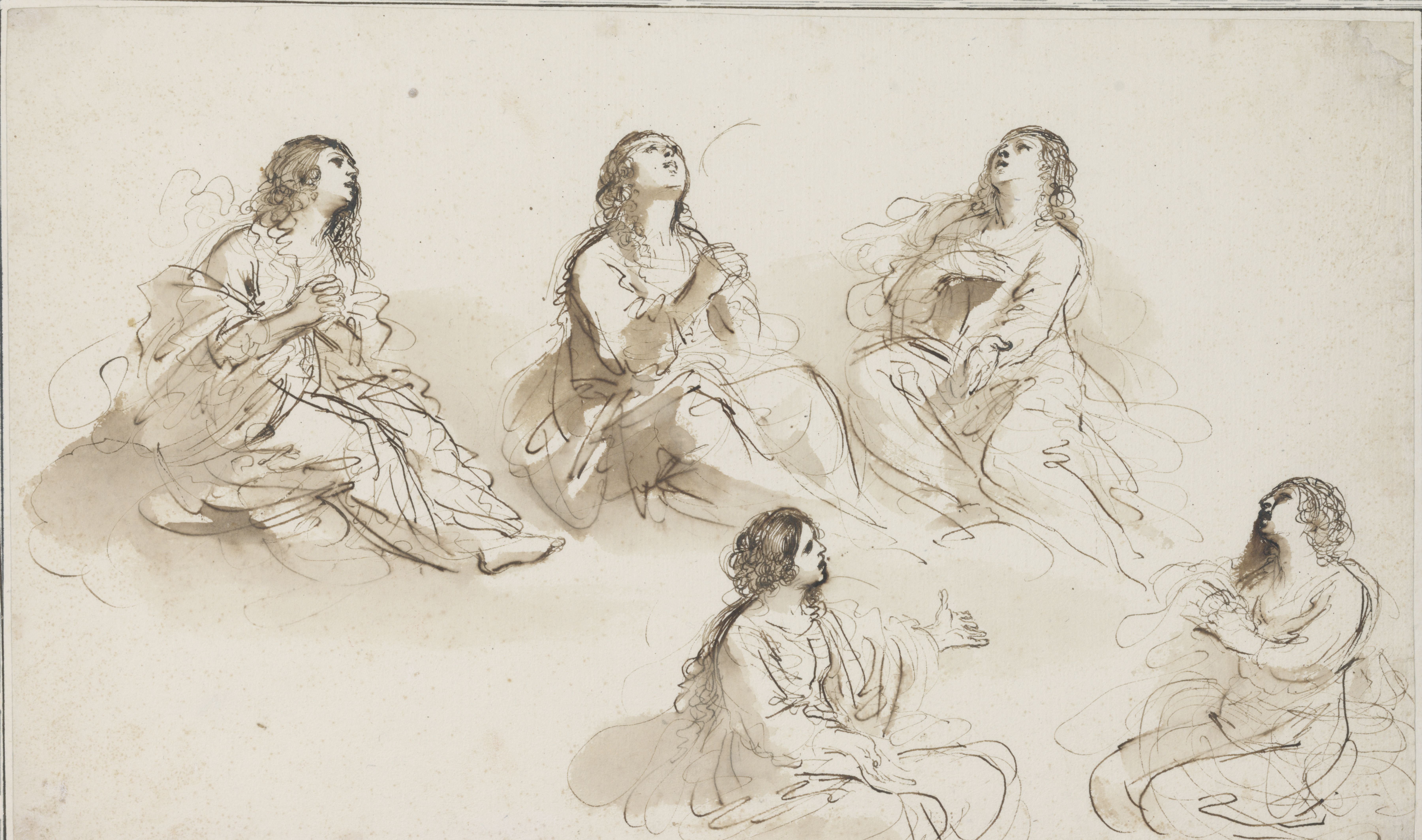 Home Online catalogues Studi & Schizzi I. Studying the Human Figure The human figure has always occupied a place of special importance in the mind of artists. During the Renaissance, when man was placed at the centre of the world by the Humanists, the representation of the human form was a major focus of artistic creation. Artists endeavoured to understand the way the body moved and functioned in order to give the protagonists in their works the most realistic and expressive character possible. The artistic treatises and academies which developed in Italy in the sixteenth century promoted the study of the human form from life, in other words, based on the observation of a live model, and this became a central workshop practice. Drawing each figure in isolation was one of the preliminary stages in the conception of a painting as much as it was an exercise for training the eye and the hand. Pentimenti, the doubling of lines, reworking and variations to all or part of a body, juxtaposed on the same support or repeated from one sheet to the other, were all signs of the draughtsman’s struggle to perfect the anatomy and to experiment with the expressive qualities of an attitude or a movement. Schizzo (i): dicono i Pittori quei leggerissimi tocchi di penna o matita, con i quali accennano i lor concetti senza dar perfezzione alle parti; il che dicono schizzare Sketch (es): the name given by painters to the very light strokes of a pen or pencil by means of which they express their ideas, without perfecting the details; they call this sketching Studio (i): termine de’ Pittori, e Scultori, col quale denominano tutti i disegni o modelli, cavati dal naturale, co’ quali si preparano a far le loro opere; poichè mediante questi, che essi chiamano studi, vengono a determinare, e perfezionare l’Idea di quella cosa, che vogliono, o con pennello, o con scarpello, rappresentare in pittura o scultura Study (ies): term used by painters and sculptors to describe the drawings or models taken from nature, with which they prepare to create their works; by means of what they name studies they are able to define and improve on the Idea of what they wish to represent, with paint brush or chisel, in painting or sculpture Filippo Baldinucci, Vocabolario Toscano dell’Arte del Disegno, Florence, 1681 1. Federico Barocci Urbino circa 1526/35 – 1612 Urbino Throughout his life, Federico Barocci followed a long and meticulous process to prepare his paintings, as described by the biographer of Italian artists Bellori. With some 1,500 to 2,000 sheets preserved, Barocci was one of the most prolific and inventive draughtsmen in the history of Italian (…) 2. Filippino Lippi Prato 1457 – 1504 Florence Filippino Lippi fixed these three young men in metalpoint, then applied white bodycolour to the first lines – although without following them precisely. The white highlights are not only there to indicate light, they also contribute to the construction of the drawing. The result is a kind of (…) 3. Mariotto Albertinelli Florence 1474 – 1515 Florence Formerly attributed to Fra Bartolommeo, this drawing is now given to Mariotto Albertinelli, his collaborator. This Florentine artist of the High Renaissance covered both sides of the sheet with figures – mainly children – in a variety of positions. Some of the postures are reminiscent of those (…) 4. Giovanni Francesco Barbieri, called Guercino Cento 1591 – 1666 Bologna The Crucifixion with Saints, painted by Guercino between 1624 and 1625 in the church of the Madonna della Ghiara in Reggio Emilia, was one of the most important commissions received by the Bolognese artist on his return from Rome. Our sheet is one of the many surviving preparatory drawings for (…) 5. Andrea del Sarto Florence 1486 – 1530 Florence Andrea del Sarto painted two Assumptions (Palazzo Pitti, Florence). The putto that supports the Virgin in both of them was prepared by Sarto first in our drawing, and then in that of the British Museum. Our sheet reads from left to right. In the first study on the left, the artist has paid no (…) 6. Federico Barocci Urbino circa 1526/35 – 1612 Urbino Federico Barocci never ceased to explore the diversity and eloquence of the human form. This double study is one of many testimonies to this. He first drew the upper kneeling figure, leafing through a book. The concise lines, the scribbled hatching and the accents in red chalk bear witness to (…) 7. Federico Barocci Urbino circa 1526/35 – 1612 Urbino This work belongs to the considerable group of 121 drawings by Barocci connected to one of his most important paintings, the Madonna del Popolo (1575-79, Uffizi, Florence). The woman represented on the left was also sketched twice on another, earlier sheet (Uffizi, Florence). Comparison of the (…) 8. Baccio Bandinelli Florence 1488/93 – 1560 Florence This drawing was executed by Baccio Bandinelli, a Florentine sculptor and goldsmith, follower of Michelangelo. Always attentive to the distribution of light and shade, he used red chalk with care, drawing clear contours and unfolding a tight network of fine, parallel hatchings. The features of (…) 9. Federico Zuccari Sant’Angelo in Vado circa 1540 – 1609 Ancona Unlike more formal official portraits, these two studies from life are strongly naturalistic. Having observed his model closely, Federico Zuccari drew Vincenzo Borghini’s features faithfully and with a firm hand: the high, balding forehead with its wrinkles, the throbbing vein on his temple, (…) 10. Giovanni Francesco Barbieri, called Guercino Cento 1591 – 1666 Bologna This double study is related to the Purification of the Virgin, a painting made by Guercino in 1654-55 for the Church of the Theatines in Ferrara. The artist first executed the more finished profile on the right, then repeated it using mostly lines in a second sketch on the left. He very subtly (…) 11. Anonymous Italian, end of the 16th century The iconography 