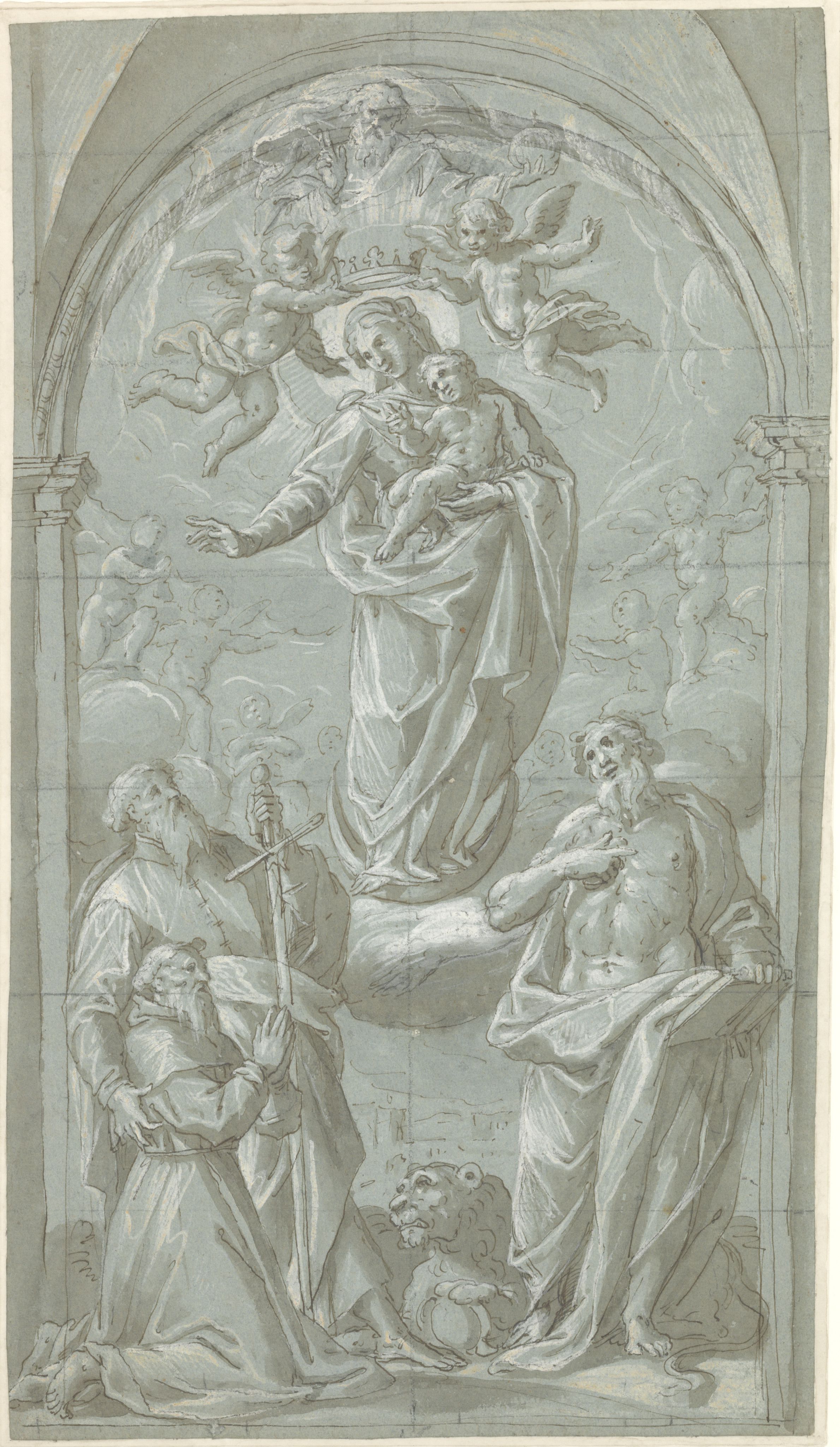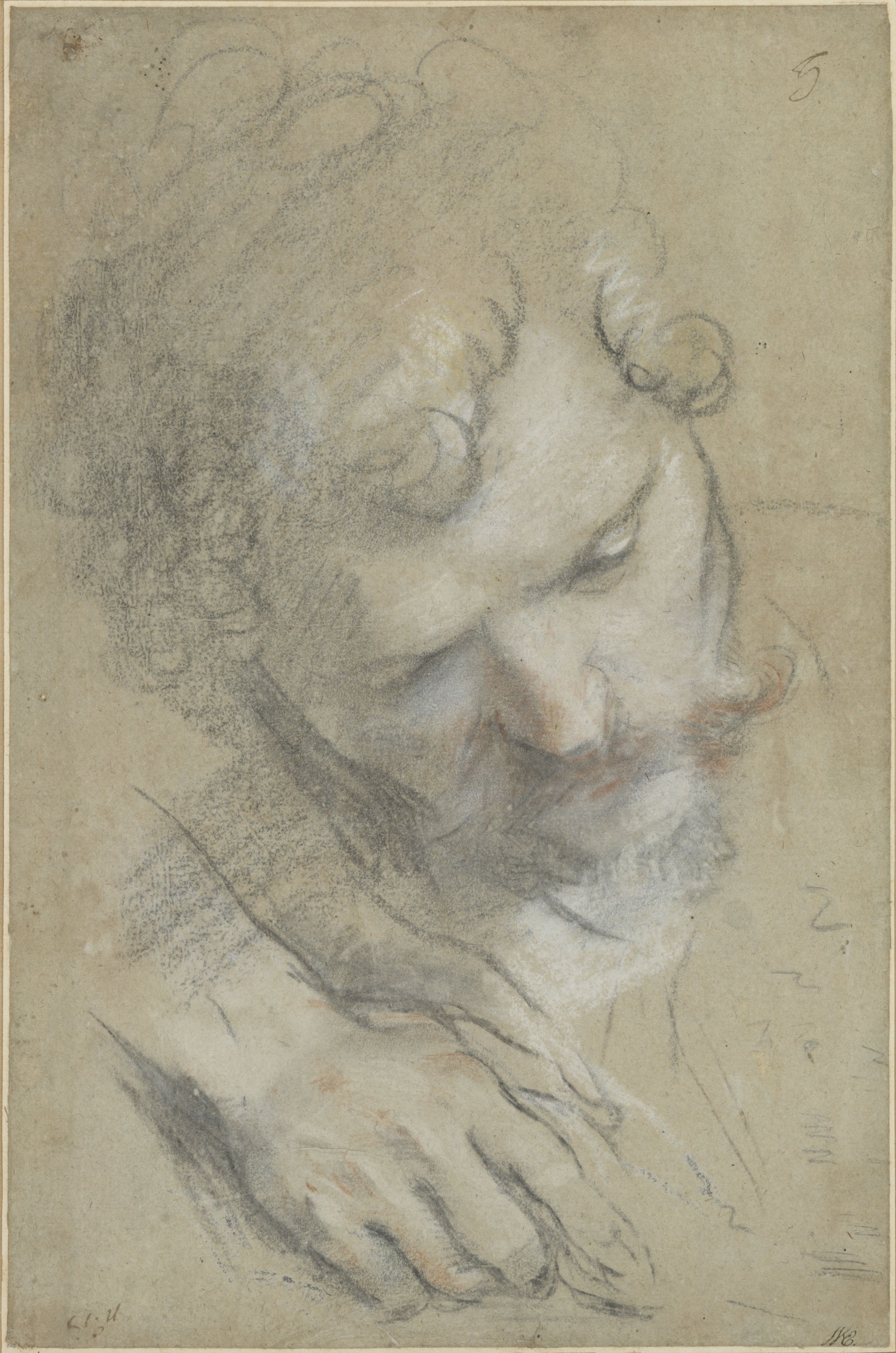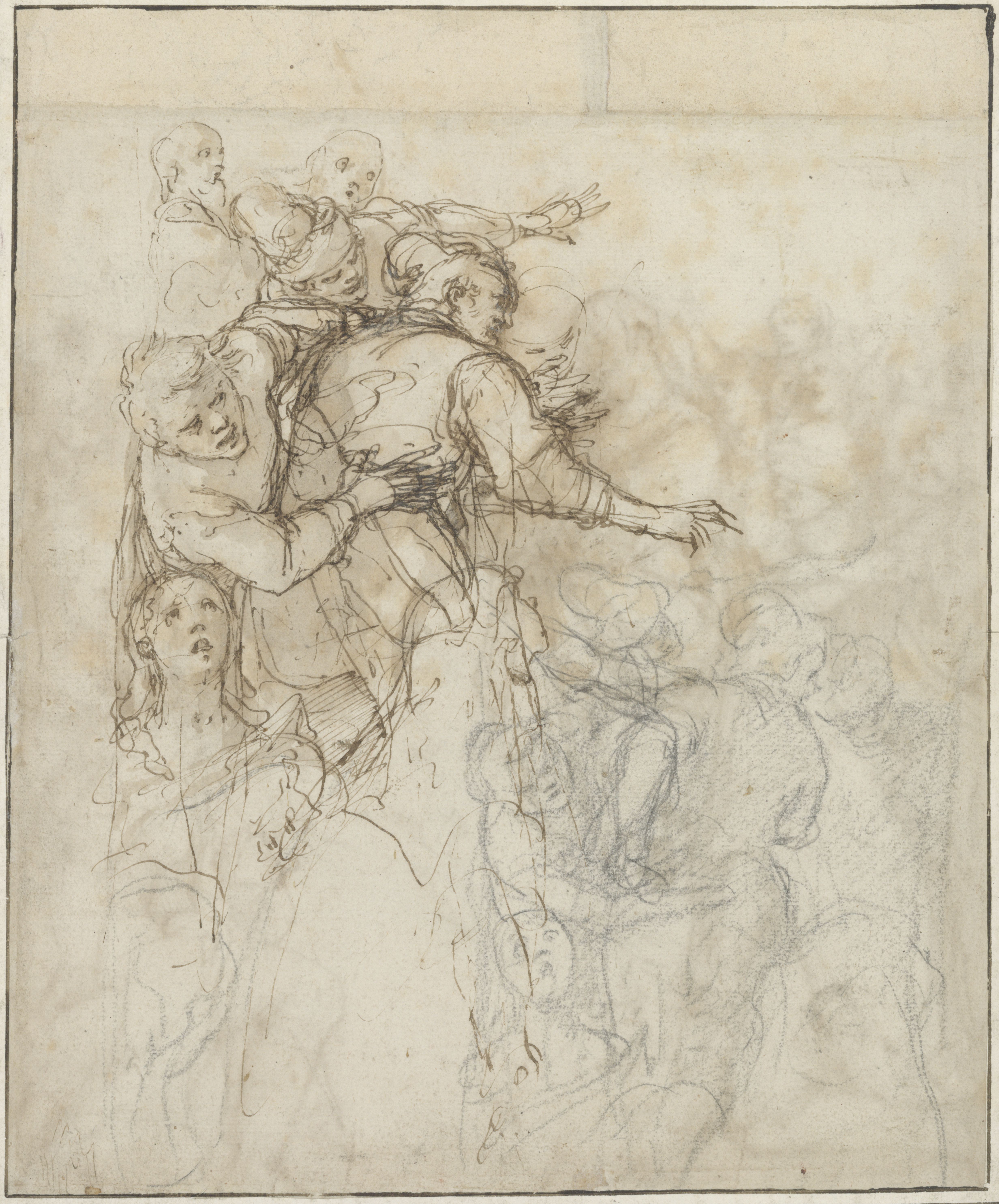 Home Online catalogues Studi & Schizzi Introduction It was in Florence, in the fifteenth century, that the earliest treatises on art came into being. In the following century, theorists such as Giorgio Vasari (1511-1574) were to assert the primacy of drawing, essential to the creative process as well as to the training of artists. In Italian, disegno referred both to the intellectual planning of a work of art (design) and to its execution (drawing). Federico Zuccari (c. 1540-1609) thus made the distinction between disegno interno, mental image, and disegno esterno, materialised image. The representation of the human form was a major preoccupation during the Renaissance and one of the constant themes of Italian art over the centuries. In their search for an ideal narrative through an image which, by its very nature, is immobile, painters were keen to represent their figures in eloquent proportions and poses. As the most immediate, spontaneous transcription of an artist’s inspiration, drawing permitted the exploration of a variety of formal solutions. From the first sketches – schizzi – rapidly set out on paper, to the finished studies – studi –, drawings provided valuable evidence of the evolution of the artist’s thought processes. In 1962, Frits Lugt characterised the act of drawing as an “involuntary confession”, through which we catch the painter unaware as they reflect. “We share his thoughts, we face his difficulties with him and we admire the way in which he manages to overcome them”. How should he define the position of the models and express the links that unite them? How should the figures be arranged in a space which corresponds to that of the projected work? How can the effects of light and shade be expressed on the figures? Thanks to the drawings from the collection of the Fondation Custodia, this exhibition invites visitors to examine the works closely and to spot the clues that reveal the experiments and intentions of the Italian masters. I. Studying the Human Figure The human figure has always occupied a place of special importance in the mind of artists. During the Renaissance, when man was placed at the centre of the world by the Humanists, the representation of the human form was a major focus of artistic creation. Artists endeavoured to understand the way the body moved and functioned in order to give the protagonists in their works the most realistic and expressive character possible. The artistic treatises and academies which developed in Italy in the sixteenth century promoted the study of the human form from life, in other words, based on the observation of a live model, and this became a central workshop practice. Drawing each figure in isolation was one of the preliminary stages in the conception of a painting as much as it was an exercise for training the eye and the hand. Pentimenti, the doubling of lines, reworking and variations to all or part of a body, juxtaposed on the same support or repeated from one sheet to the other, were all signs of the draughtsman’s struggle to perfect the anatomy and to experiment with the expressive qualities of an attitude or a movement. Schizzo (i): dicono i Pittori quei leggerissimi tocchi di penna o matita, con i quali accennano i lor concetti senza dar perfezzione alle parti; il che dicono schizzare Sketch (es): the name given by painters to the very light strokes of a pen or pencil by means of which they express their ideas, without perfecting the details; they call this sketching Studio (i): termine de’ Pittori, e Scultori, col quale denominano tutti i disegni o modelli, cavati dal naturale, co’ quali si preparano a far le loro opere; poichè mediante questi, che essi chiamano studi, vengono a determinare, e perfezionare l’Idea di quella cosa, che vogliono, o con pennello, o con scarpello, rappresentare in pittura o scultura Study (ies): term used by painters and sculptors to describe the drawings or models taken from nature, with which they prepare to create their works; by means of what they name studies they are able to define and improve on the Idea of what they wish to represent, with paint brush or chisel, in painting or sculpture Filippo Baldinucci, Vocabolario Toscano dell’Arte del Disegno, Florence, 1681 1. Federico Barocci Head of a Bearded Man, Inclined to Left, and Study of his Hand, 1590’s 2. Filippino Lippi Three Studies of a Young Man Wearing a Cloak 3. Mariotto Albertinelli Eight Studies of Naked Children 4. Giovanni Francesco Barbieri, called Guercino Five Studies for the Magdalen, circa 1620 5. Andrea del Sarto Studies for the Head, Torso and Right Arm of a Boy, circa 1526 6. Federico Barocci Two Studies of a Kneeling Man, circa 1605-1608 7. Federico Barocci Two Studies of Female Figures and a Drapery, between 1575 and 1579 8. Baccio Bandinelli Bust-Portrait of a Young Woman, Looking Down. Verso: Portrait of the Same Model, Looking over her Right Shoulder 9. Federico Zuccari Two Studies of a Head: Vincenzo Borghini, circa 1575-1579 10. Giovanni Francesco Barbieri, called Guercino Two Studies for the Head of the Virgin Mary, circa 1654 11. Anonymous Italian, end of the 16th century Allegory of Charity (?) 12. Francesco Salviati Study of a Draped Female Figure: Salome, before 1541 13. Giuseppe Cesari, called il Cavalier d’Arpino Persian Sibyl, circa 1593-1595 14. Ludovico Carracci A Monk Seated with a Book 15. Jacopo Chimenti, called Jacopo da Empoli A Monk Kneeling, in Profile to the Left: Saint Francis, circa 1590 16. Francesco Curradi Study of a Bearded Man Seated, in Profile to Left 17. Andrea del Sarto Study of a Child in his Mother’s Arms, between 1524 and 1526 18. Bartolomeo Schedoni A Seated Child, circa 1610 19. Carlo Maratti Study of a Naked Child, Looking down to Right, circa 1687 20. Carlo Maratti Study of a Child, in Profile to Left, circa 1680 21. Jacopo dal Ponte, called Jacopo Bassano or Carlo Caliari Study of the Back of a Nude Man 22. Annibale Carracci St