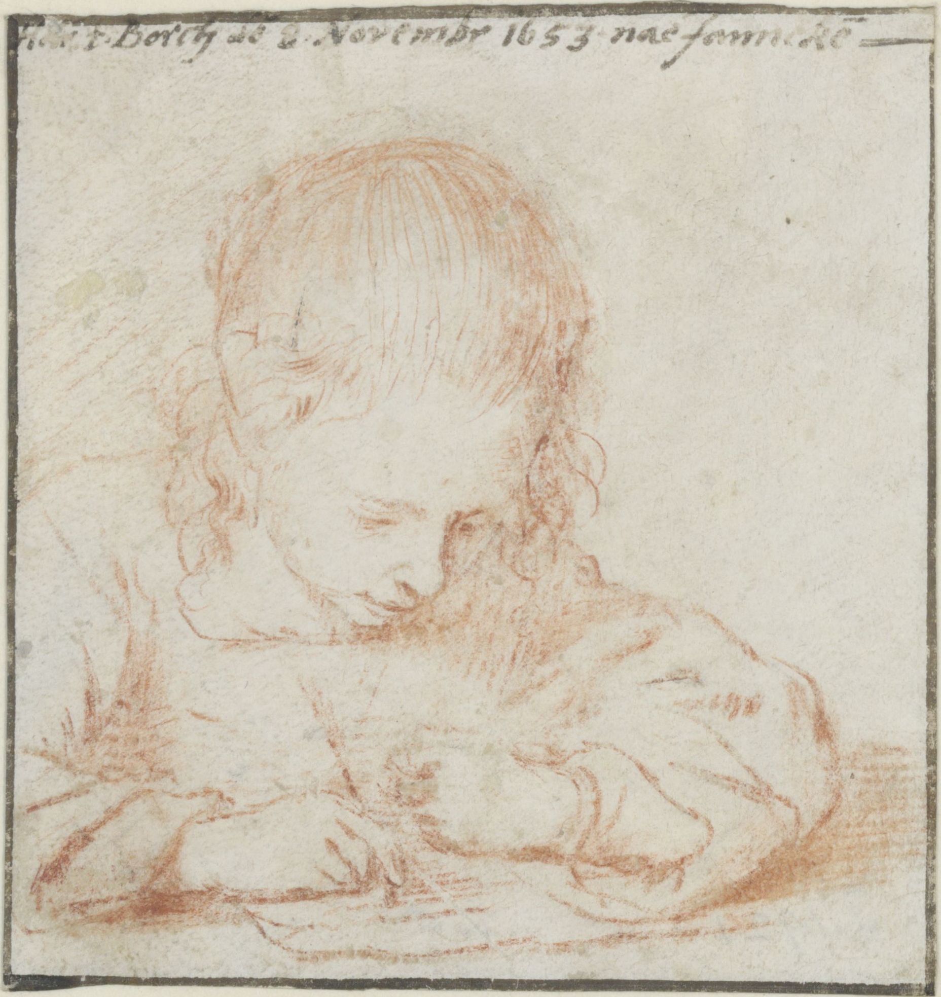 Accueil Catalogues en ligne Enfants du Siècle d’or 1. Anonyme, Pays-Bas du Nord Portrait d’un enfant de six mois, 1626 2. Anonyme, Pays-Bas, Frise occidentale Portrait de Grietge Maertensdochter, 1629 3. Anonyme, Pays-Bas du Nord ? Portrait en buste d’une fillette, vers 1635 4. Anonyme hollandais (XVIIe siècle) Jeune fille endormie, portrait de « Elisabeta de Lendelee » ; verso : Portrait de Maria Hessels 5. Anonyme hollandais (?) Enfant endormi, 1666 6. Anonyme hollandais (XVIIe siècle) Fillette mangeant sa bouillie 7. Anonyme hollandais ou flamand (XVIIe siècle) Famille dans un paysage 8. David Bailly Portrait d’un jeune garçon, 1626 9. Gerard ter Borch le Jeune Tête d’un jeune homme 10. Harmen ter Borch Jenneken ter Borch écrivant, 1653 11. Moses ter Borch Figure debout 12. Jan de Braij Portrait d’une jeune fille de douze ans, 1663 13. Casper Casteleyn Jeune homme coiffé d’un béret, 1652 14. Gonzales Coques, attribué à Portrait d’un garçon 15. Jan Cossiers Portrait de Jan François Cossiers, 1658 16. Jacob Gerritsz. Cuyp Portrait d’un jeune homme de dix-neuf ans, 1630 17. Abraham van Diepenbeeck Portrait de famille dans un intérieur 18. Abraham van Diepenbeeck Étude d’une famille sur un perron 19. Karel du Jardin Garçon jouant du violon entouré de chiens (Le Savoyard), 1658 20. Govert Flinck Enfant endormi, 1643 21. Jacques de Gheyn II Portrait de Hugo Grotius, 1599 22. Jacques de Gheyn II La Prière avant le repas, vers 1595 23. Jacques de Gheyn II Un portrait de famille 24. Hendrick Goltzius Portrait d’un garçon, 1583 25. Hendrick Goltzius Chien endormi ; verso : Étude du même chien, vu de dos, vers 1596 26. Hendrick Goltzius Portrait de Frederik de Vries, 1597 27. Dirk Helmbreeker Portrait de Cornelis Bega, vers 1650-1654 28. Nicolaes Maes Portrait d’une fillette avec un chevreuil, vers 1675 29. Frans van Mieris l’Ancien Willem Paets dans son berceau, 1665 30. Johannes Jan Mijtens Portrait d’une jeune fille cueillant des raisins, vers 1638-1640 31. Michaelina Wautier (Mons 1617 1689 1710 Bruxelles), atelier de Trois jeunes gens, l’un dessinant 32. Adriaen van Ostade Étude pour un portrait de famille, vers 1654 33. Adriaen van Ostade Étude pour un portrait de famille, vers 1654 34. Adriaen van Ostade Étude pour un portrait de famille, vers 1654 35. Gerrit Pietersz Fillette portant un panier, 1607 36. Jan Antonisz van Ravesteyn Portrait de Hugo Grotius, à l’âge de seize ans, 1599 37. Rembrandt Harmensz. van Rijn Portrait d’un garçon, de profil, 1641 38. Rembrandt Harmensz. van Rijn Nu masculin, assis et debout (« Het rolwagentje », Le Trotteur), vers 1646 39. Rembrandt Harmensz. van Rijn Femme portant un enfant sur ses genoux, vers 1645-1650 40. Constantijn van Renesse Garçon debout coiffé d’un bonnet 41. Jan Saenredam, d’après Hendrick Goltzius Le Matin (Les Quatre parties du jour), vers 1598/1599 42. Abraham van den Tempel Portrait de Cornelis van Groenendyck (1658-1704), 1668 43. Wallerant Vaillant Tête d’un garçon 44. Cornelis de Vos Étude de tête de fillette, verso : Esquisse de la Charité romaine (Cimon et Péro) 45. Adriaen van der Werff Un enfant jouant du tambour à friction Colophon