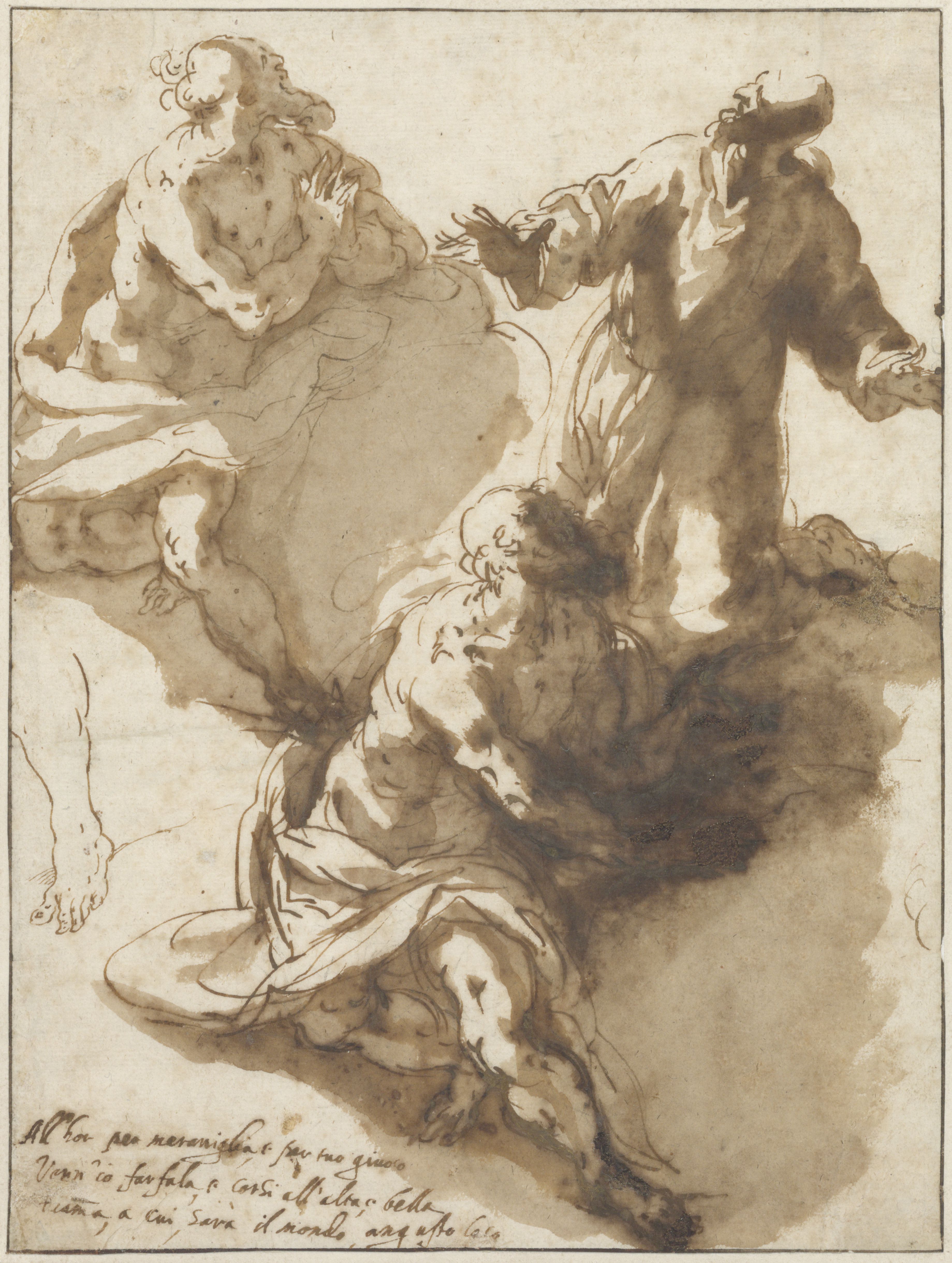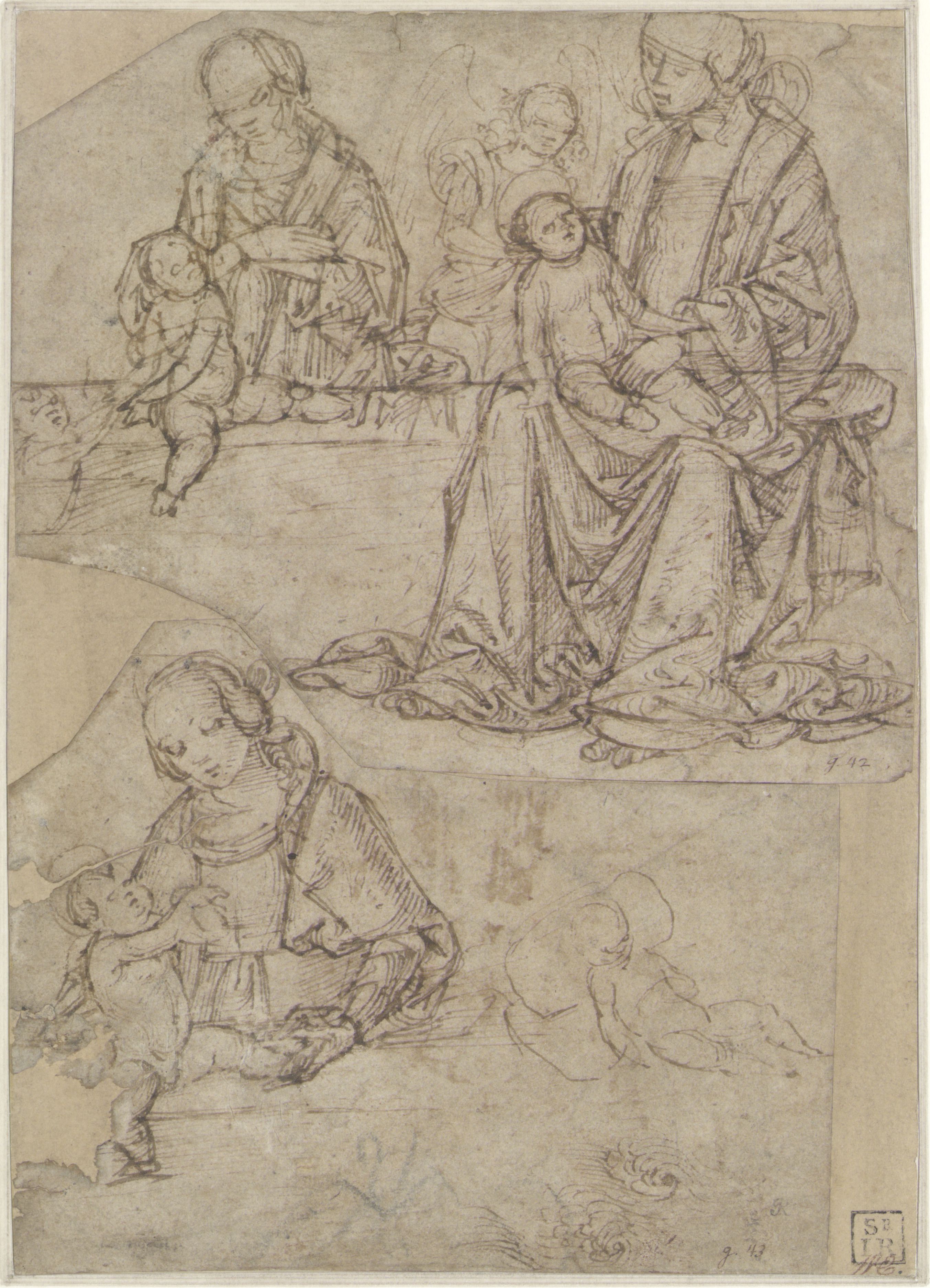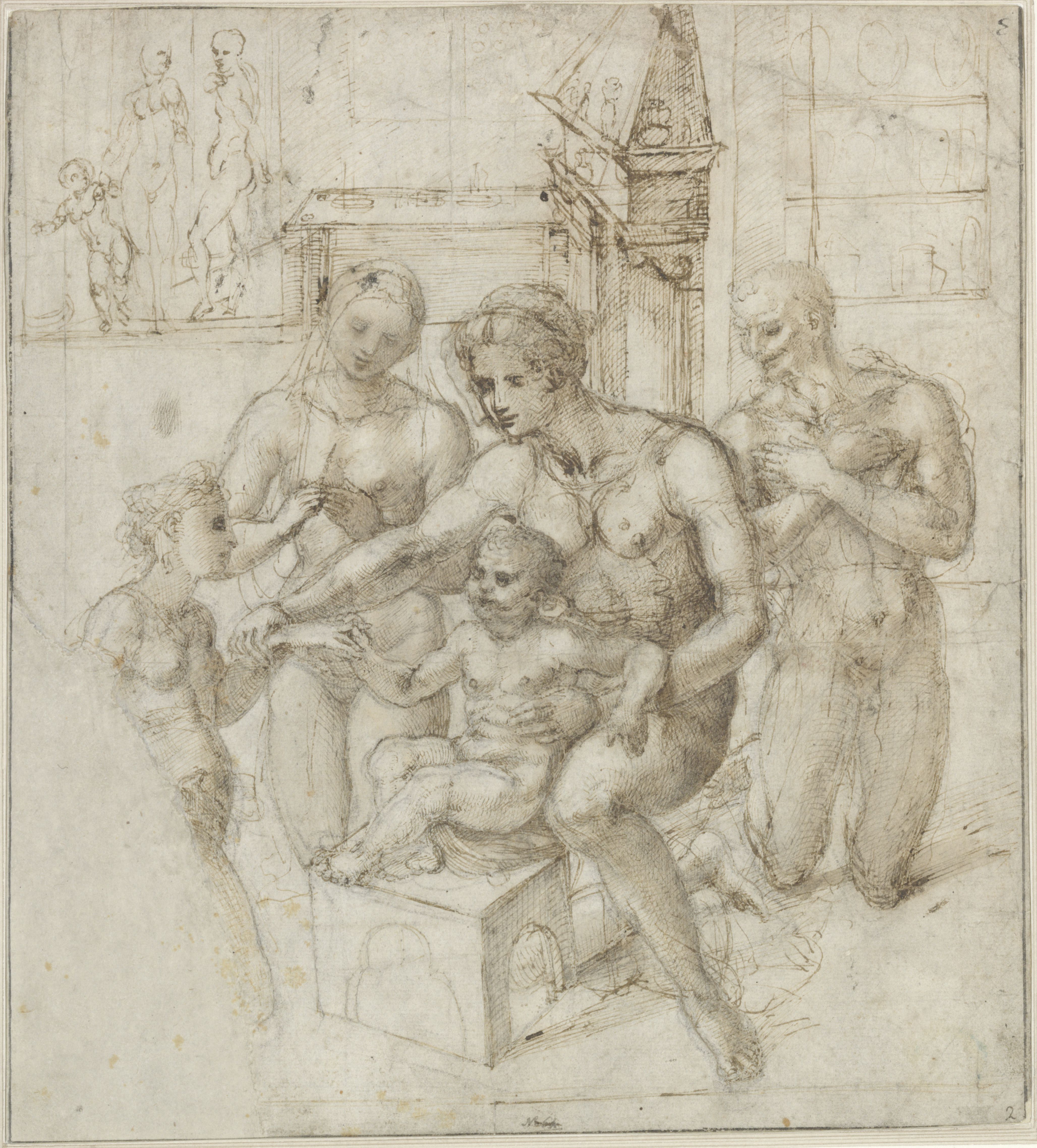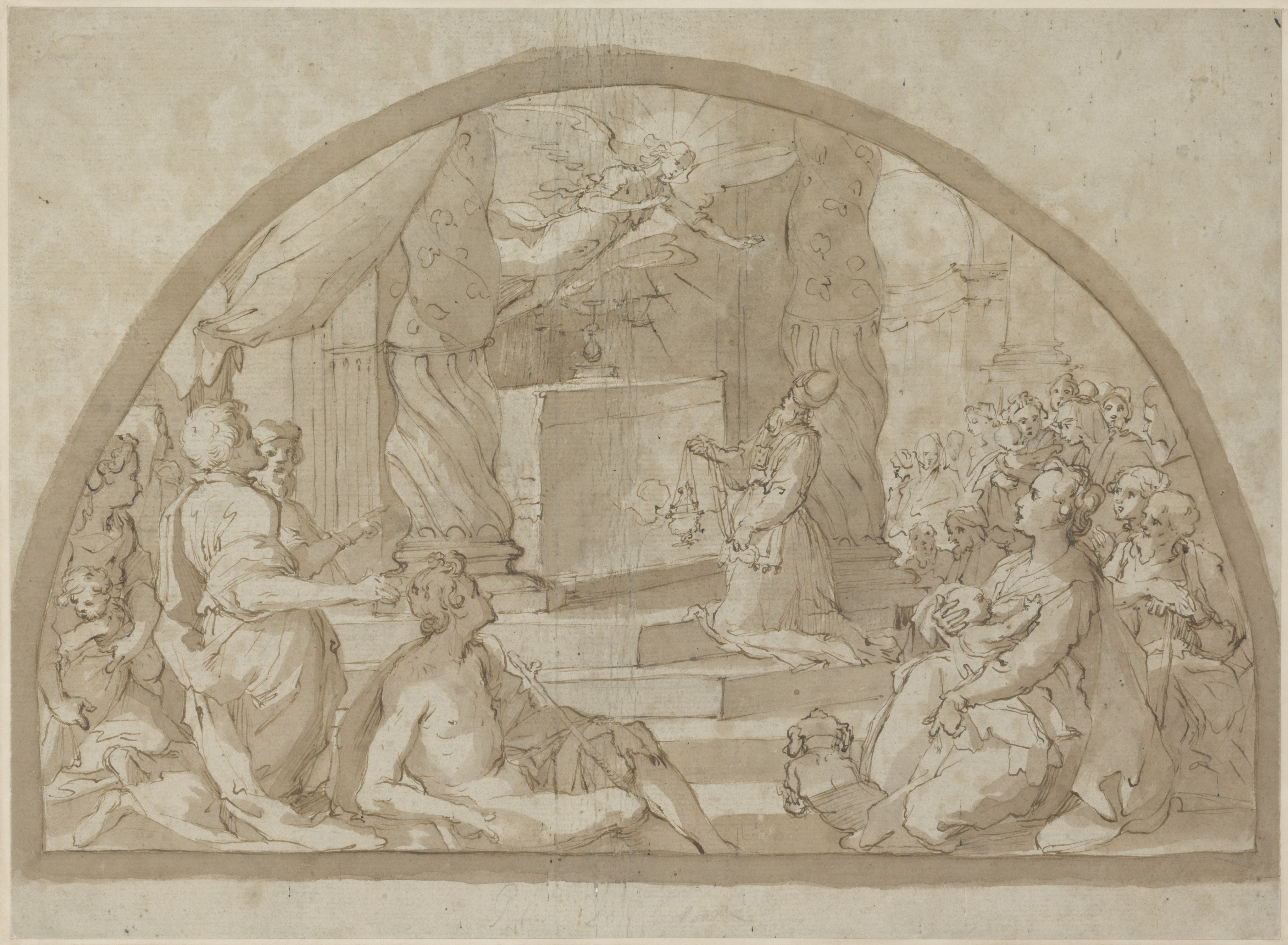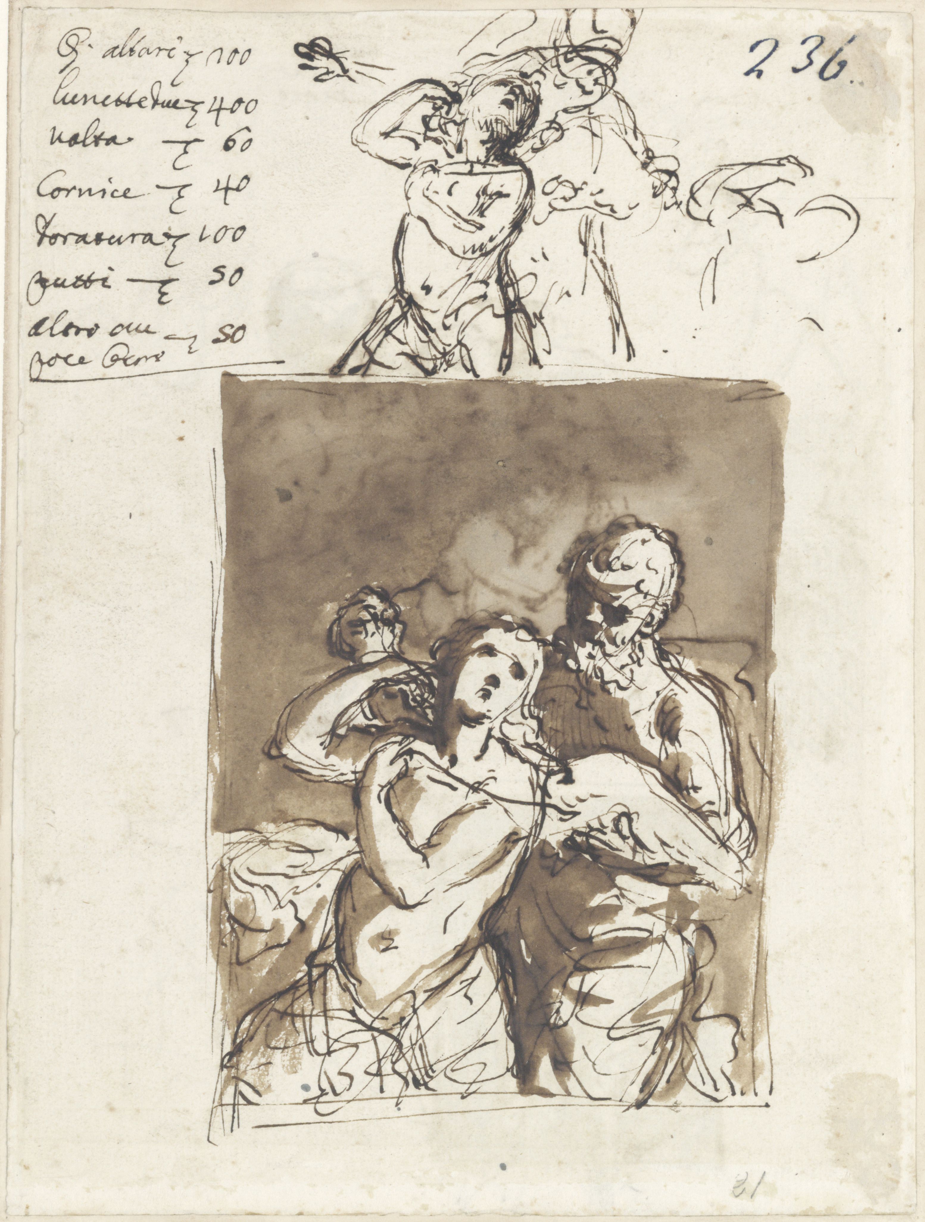 Accueil Catalogues en ligne Studi & Schizzi Introduction C’est à Florence, au XVe siècle, que les premiers traités artistiques virent le jour. Dès le siècle suivant, les théoriciens tels que Giorgio Vasari (1511 – 1574) affirmèrent la primauté du dessin, essentiel dans le processus de création, autant que dans la formation des artistes. En italien, disegno désignait aussi bien le projet intellectuel d’une œuvre (dessein) que son exécution formelle (dessin). Federico Zuccari (v. 1540 – 1609) distinguait ainsi le disegno interno, image mentale, et le disegno esterno, image matérialisée. La représentation de la figure humaine fut une préoccupation majeure de la Renaissance et fit l’objet d’un intérêt constant dans l’art italien au cours des siècles. Cherchant à atteindre une narration idéale dans une image qui, par nature, est immobile, les peintres s’attachèrent à représenter des personnages dans des proportions et des attitudes éloquentes. Transcription la plus immédiate et spontanée de l’inspiration des artistes, le dessin leur permettait d’explorer différentes solutions formelles. Du premier geste des esquisses – schizzi – rapidement tracées sur le papier, aux études – studi – plus soignées, les dessins sont de précieux témoignages du cheminement de l’esprit de l’artiste. En 1962, Frits Lugt présentait l’acte de dessiner comme une « confession involontaire », par laquelle nous surprenons le peintre dans ses réflexions. « On partage ses pensées, on se heurte avec lui aux difficultés, on admire la manière dont il parvient à les vaincre. » Comment définir la position des modèles et les liens qui les unissent ? Comment disposer ces figures dans un espace correspondant à celui de l’œuvre future ? Comment traduire les effets d’ombre et de lumière sur les corps ? Grâce aux œuvres issues des collections de la Fondation Custodia, l’exposition invite à observer les dessins, y déceler les indices révélateurs des recherches et des intentions des maîtres italiens. I. Étudier la figure La figure humaine a toujours occupé une position privilégiée dans l’esprit des artistes. À la Renaissance, quand l’Humanisme plaça l’homme au centre du monde, sa représentation devint un enjeu majeur de la création artistique. Les artistes cherchèrent à comprendre la façon dont un corps se meut et agit, pour donner aux personnages de leurs œuvres un caractère plus réaliste et éloquent. Les traités et les académies artistiques qui se développaient en Italie au XVIe siècle prônèrent l’étude des figures d’après nature, c’est-à-dire basée sur l’observation d’un modèle vivant, qui devint une pratique centrale au sein des ateliers.Dessiner chaque figure de manière particulière constituait aussi bien l’une des étapes préliminaires à la réalisation d’une peinture qu’un exercice pour entraîner l’œil et la main. Les pentimenti (repentirs), le dédoublement des lignes, les reprises et les variations de tout ou partie d’un corps, juxtaposées sur un même support ou répétées d’une feuille à l’autre, sont autant de signes montrant le dessinateur qui s’évertue à perfectionner l’anatomie et à expérimenter l’expressivité d’une attitude ou d’un mouvement. Schizzo (i) : dicono i Pittori quei leggerissimi tocchi di penna o matita, con i quali accennano i lor concetti senza dar perfezzione alle parti ; il che dicono schizzare Esquisse (s) : sont ainsi appelés par les peintres les très légers tracés de plumes ou de crayons avec lesquels ils évoquent leurs concepts sans en perfectionner les parties ; ce qu’ils appellent esquisser Studio (i) : termine de’ Pittori, e Scultori, col quale denominano tutti i disegni o modelli, cavati dal naturale, co’ quali si preparano a far le loro opere ; poichè mediante questi, che essi chiamano studi, vengono a determinare, e perfezionare l’Idea di quella cosa, che vogliono, o con pennello, o con scarpello, rappresentare in pittura o scultura Étude (s) : terme des peintres et des sculpteurs par lequel ils désignent tous les dessins ou modèles tirés de la nature, avec lesquels ils se préparent à faire leurs œuvres ; car par l’intermédiaire de ce qu’ils appellent études, ils parviennent à déterminer et à perfectionner l’Idée de ce qu’ils veulent, avec le pinceau ou le ciseau, représenter en peinture ou en sculpture Filippo Baldinucci, Vocabolario Toscano dell’Arte del Disegno, Florence, 1681 1. Federico Barocci Tête d’un homme barbu, inclinée vers la droite et étude de sa main, années 1590 2. Filippino Lippi Trois études d’un jeune homme portant un manteau 3. Mariotto Albertinelli Huit études d’enfants nus 4. Giovanni Francesco Barbieri, dit Guercino Cinq études pour Marie-Madeleine, vers 1620 5. Andrea del Sarto Études pour la tête, le torse et le bras droit d’un garçon, vers 1526 6. Federico Barocci Deux études d’un homme agenouillé, vers 1605-1608 7. Federico Barocci Deux études de femmes et une étude de draperie, entre 1575 et 1579 8. Baccio Bandinelli Portrait d’une jeune femme le regard baissé. Verso : Portrait du même modèle, regardant derrière son épaule 9. Federico Zuccari Deux études de tête : Vincenzo Borghini, vers 1575-1579 10. Giovanni Francesco Barbieri, dit Guercino Deux études pour la tête de la Vierge, vers 1654 11. Anonyme italien fin, du XVIe siecle Allégorie de la Charité (?) 12. Francesco Salviati Figure féminine drapée, en pied : Salomé, avant 1541 13. Giuseppe Cesari, dit il Cavalier d’Arpino Sibylle persique, vers 1593-1595 14. Ludovico Carracci Un moine assis avec un livre 15. Jacopo Chimenti, dit Jacopo da Empoli Un moine agenouillé en prière : saint François, vers 1590 16. Francesco Curradi Un homme barbu, assis, tourné vers la gauche 17. Andrea del Sarto Étude d’un enfant dans les bras de sa mère, entre 1524 et 1526 18.