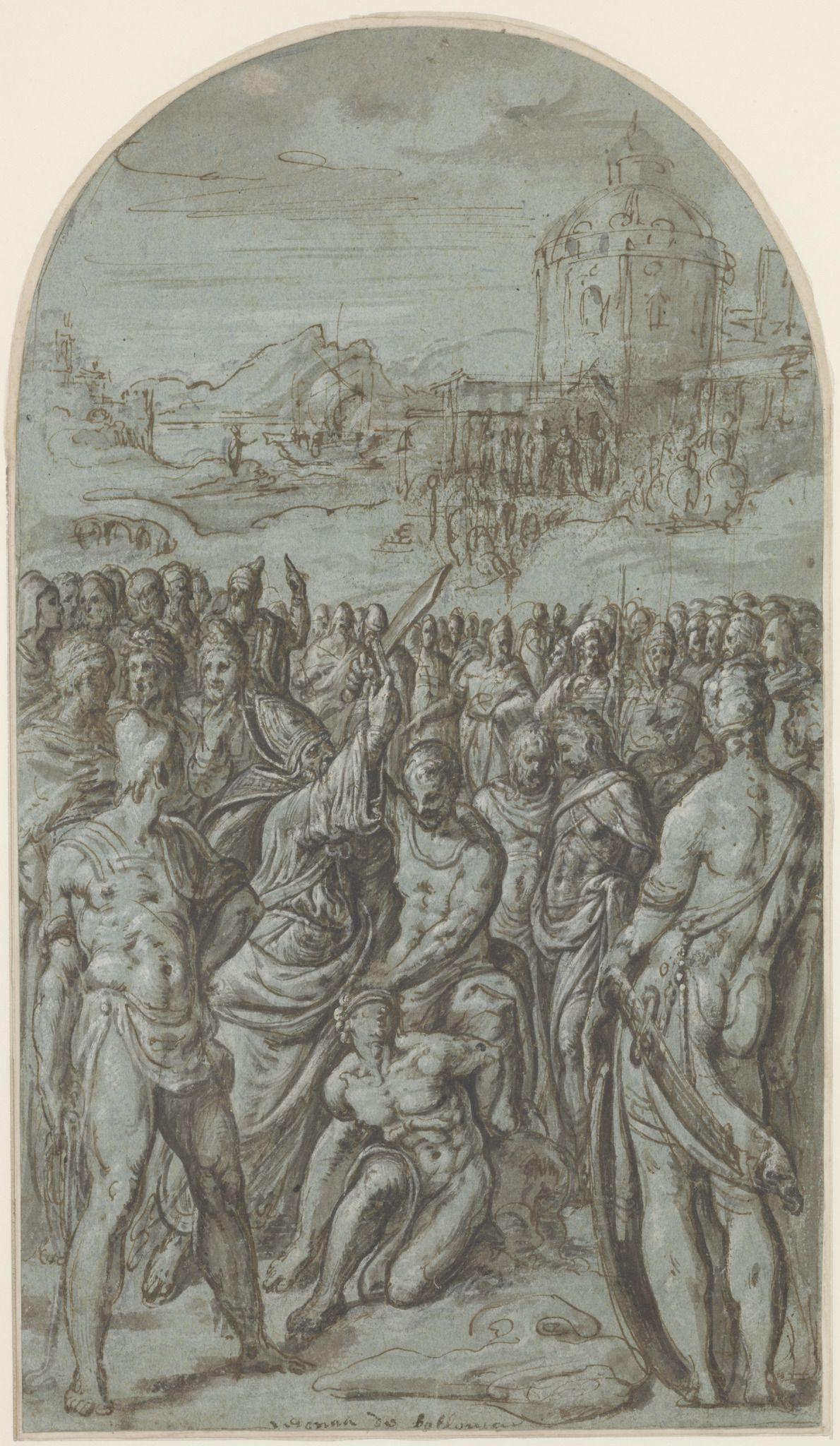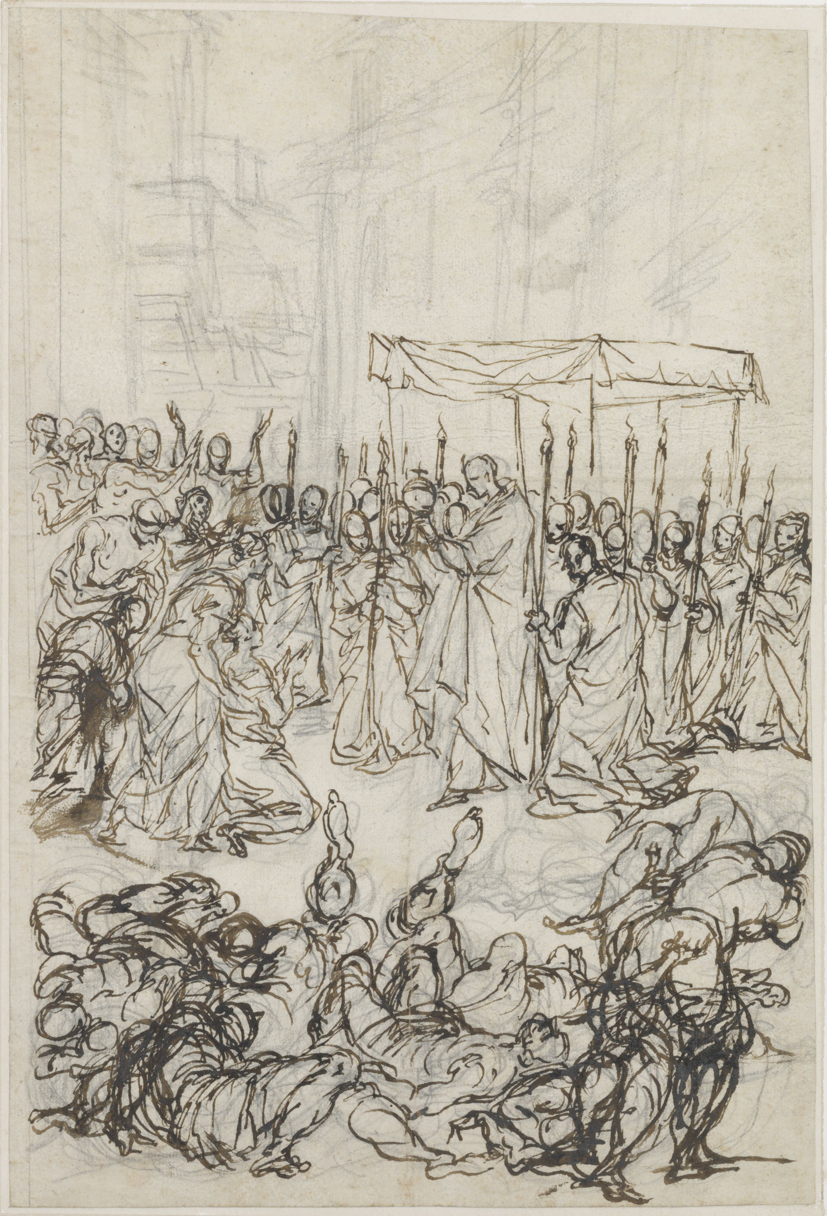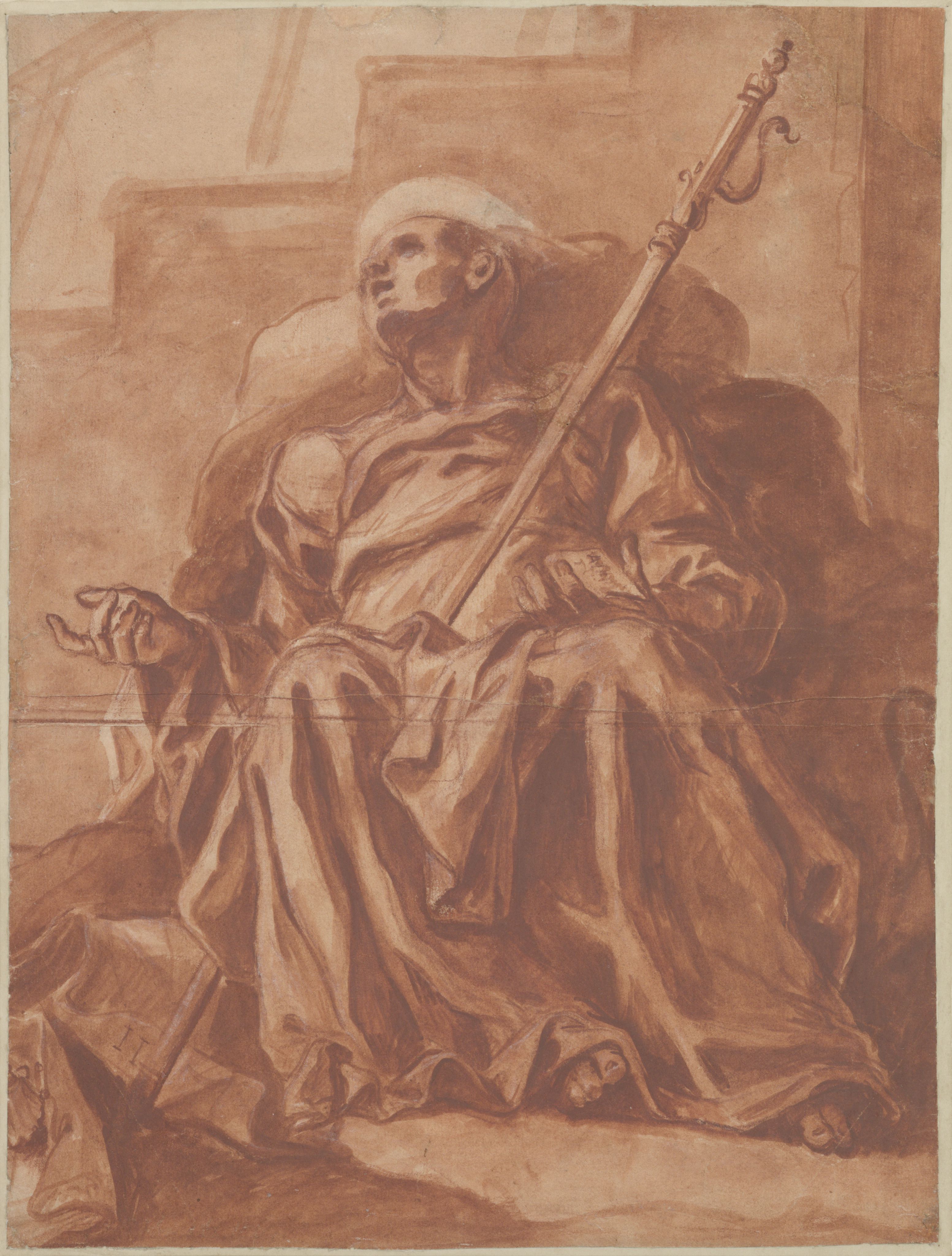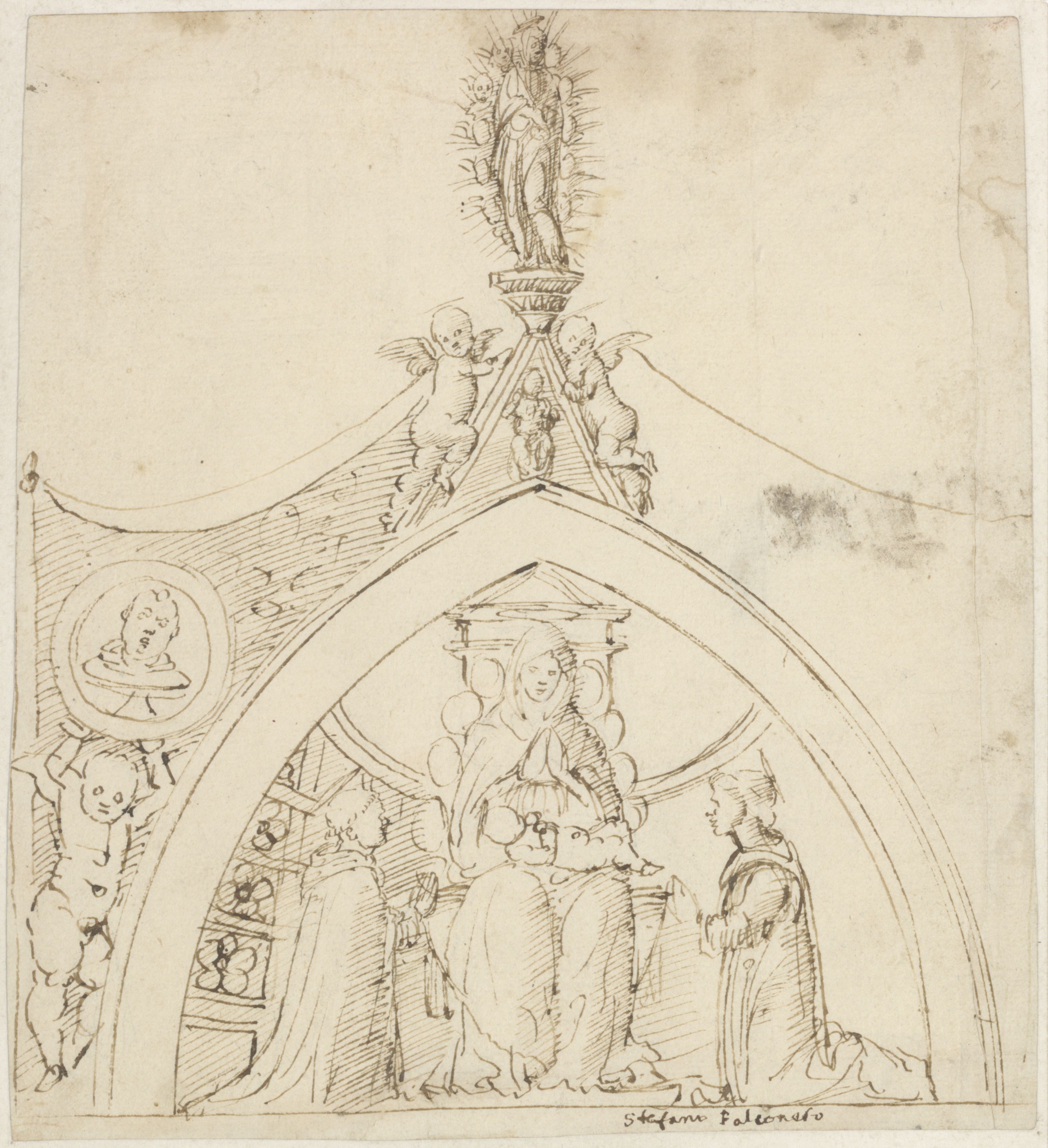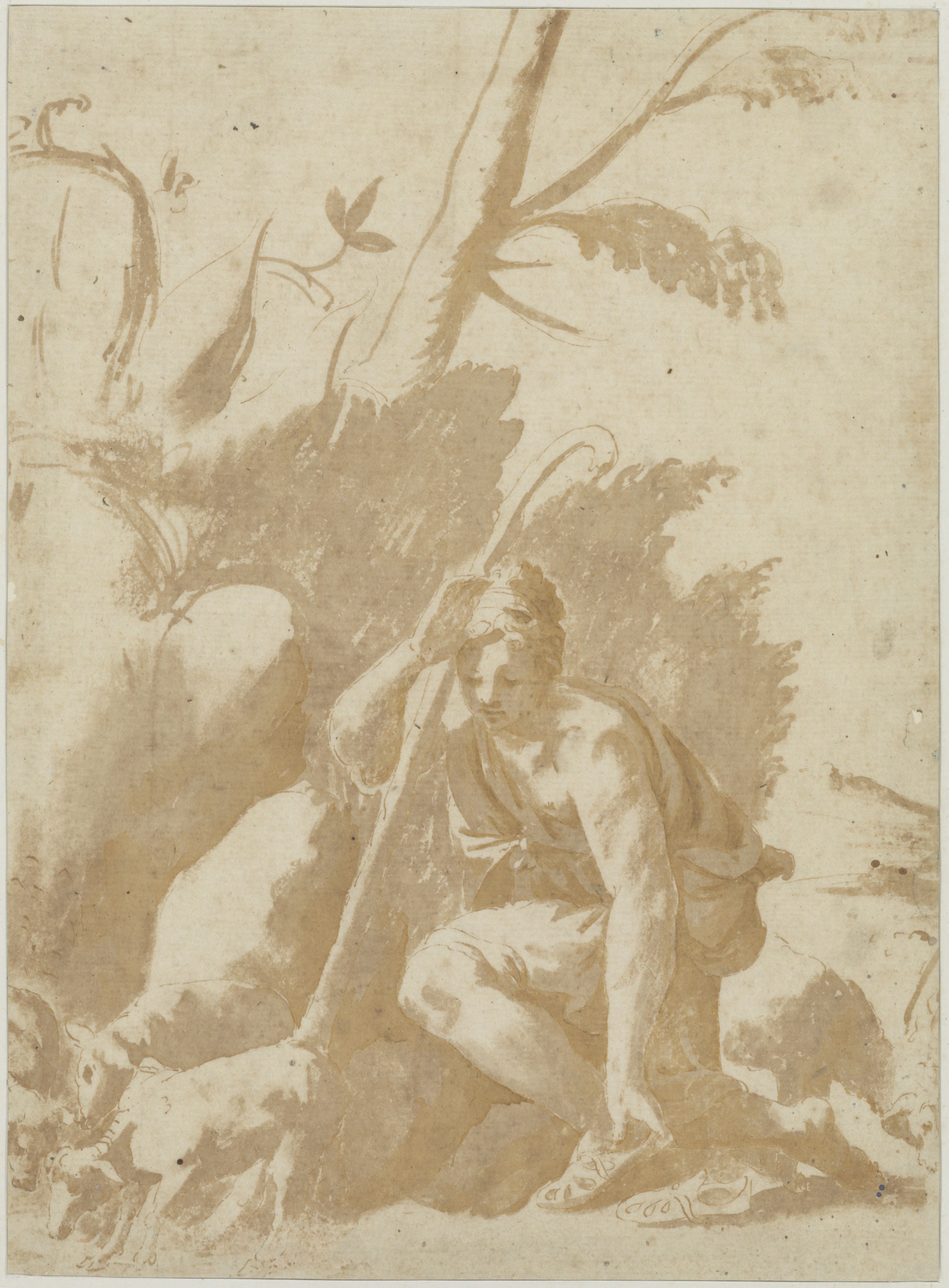Accueil Catalogues en ligne Studi & Schizzi Introduction C’est à Florence, au XVe siècle, que les premiers traités artistiques virent le jour. Dès le siècle suivant, les théoriciens tels que Giorgio Vasari (1511 – 1574) affirmèrent la primauté du dessin, essentiel dans le processus de création, autant que dans la formation des artistes. En italien, disegno désignait aussi bien le projet intellectuel d’une œuvre (dessein) que son exécution formelle (dessin). Federico Zuccari (v. 1540 – 1609) distinguait ainsi le disegno interno, image mentale, et le disegno esterno, image matérialisée. La représentation de la figure humaine fut une préoccupation majeure de la Renaissance et fit l’objet d’un intérêt constant dans l’art italien au cours des siècles. Cherchant à atteindre une narration idéale dans une image qui, par nature, est immobile, les peintres s’attachèrent à représenter des personnages dans des proportions et des attitudes éloquentes. Transcription la plus immédiate et spontanée de l’inspiration des artistes, le dessin leur permettait d’explorer différentes solutions formelles. Du premier geste des esquisses – schizzi – rapidement tracées sur le papier, aux études – studi – plus soignées, les dessins sont de précieux témoignages du cheminement de l’esprit de l’artiste. En 1962, Frits Lugt présentait l’acte de dessiner comme une « confession involontaire », par laquelle nous surprenons le peintre dans ses réflexions. « On partage ses pensées, on se heurte avec lui aux difficultés, on admire la manière dont il parvient à les vaincre. » Comment définir la position des modèles et les liens qui les unissent ? Comment disposer ces figures dans un espace correspondant à celui de l’œuvre future ? Comment traduire les effets d’ombre et de lumière sur les corps ? Grâce aux œuvres issues des collections de la Fondation Custodia, l’exposition invite à observer les dessins, y déceler les indices révélateurs des recherches et des intentions des maîtres italiens. I. Étudier la figure La figure humaine a toujours occupé une position privilégiée dans l’esprit des artistes. À la Renaissance, quand l’Humanisme plaça l’homme au centre du monde, sa représentation devint un enjeu majeur de la création artistique. Les artistes cherchèrent à comprendre la façon dont un corps se meut et agit, pour donner aux personnages de leurs œuvres un caractère plus réaliste et éloquent. Les traités et les académies artistiques qui se développaient en Italie au XVIe siècle prônèrent l’étude des figures d’après nature, c’est-à-dire basée sur l’observation d’un modèle vivant, qui devint une pratique centrale au sein des ateliers.Dessiner chaque figure de manière particulière constituait aussi bien l’une des étapes préliminaires à la réalisation d’une peinture qu’un exercice pour entraîner l’œil et la main. Les pentimenti (repentirs), le dédoublement des lignes, les reprises et les variations de tout ou partie d’un corps, juxtaposées sur un même support ou répétées d’une feuille à l’autre, sont autant de signes montrant le dessinateur qui s’évertue à perfectionner l’anatomie et à expérimenter l’expressivité d’une attitude ou d’un mouvement. Schizzo (i) : dicono i Pittori quei leggerissimi tocchi di penna o matita, con i quali accennano i lor concetti senza dar perfezzione alle parti ; il che dicono schizzare Esquisse (s) : sont ainsi appelés par les peintres les très légers tracés de plumes ou de crayons avec lesquels ils évoquent leurs concepts sans en perfectionner les parties ; ce qu’ils appellent esquisser Studio (i) : termine de’ Pittori, e Scultori, col quale denominano tutti i disegni o modelli, cavati dal naturale, co’ quali si preparano a far le loro opere ; poichè mediante questi, che essi chiamano studi, vengono a determinare, e perfezionare l’Idea di quella cosa, che vogliono, o con pennello, o con scarpello, rappresentare in pittura o scultura Étude (s) : terme des peintres et des sculpteurs par lequel ils désignent tous les dessins ou modèles tirés de la nature, avec lesquels ils se préparent à faire leurs œuvres ; car par l’intermédiaire de ce qu’ils appellent études, ils parviennent à déterminer et à perfectionner l’Idée de ce qu’ils veulent, avec le pinceau ou le ciseau, représenter en peinture ou en sculpture Filippo Baldinucci, Vocabolario Toscano dell’Arte del Disegno, Florence, 1681 1. Federico Barocci Tête d’un homme barbu, inclinée vers la droite et étude de sa main, années 1590 2. Filippino Lippi Trois études d’un jeune homme portant un manteau 3. Mariotto Albertinelli Huit études d’enfants nus 4. Giovanni Francesco Barbieri, dit Guercino Cinq études pour Marie-Madeleine, vers 1620 5. Andrea del Sarto Études pour la tête, le torse et le bras droit d’un garçon, vers 1526 6. Federico Barocci Deux études d’un homme agenouillé, vers 1605-1608 7. Federico Barocci Deux études de femmes et une étude de draperie, entre 1575 et 1579 8. Baccio Bandinelli Portrait d’une jeune femme le regard baissé. Verso : Portrait du même modèle, regardant derrière son épaule 9. Federico Zuccari Deux études de tête : Vincenzo Borghini, vers 1575-1579 10. Giovanni Francesco Barbieri, dit Guercino Deux études pour la tête de la Vierge, vers 1654 11. Anonyme italien fin, du XVIe siecle Allégorie de la Charité (?) 12. Francesco Salviati Figure féminine drapée, en pied : Salomé, avant 1541 13. Giuseppe Cesari, dit il Cavalier d’Arpino Sibylle persique, vers 1593-1595 14. Ludovico Carracci Un moine assis avec un livre 15. Jacopo Chimenti, dit Jacopo da Empoli Un moine agenouillé en prière : saint François, vers 1590 16. Francesco Curradi Un homme barbu, assis, tourné vers la gauche 17. Andrea del Sarto Étude d’un enfant dans les bras de sa mère, entre 1524 et 1526 18.