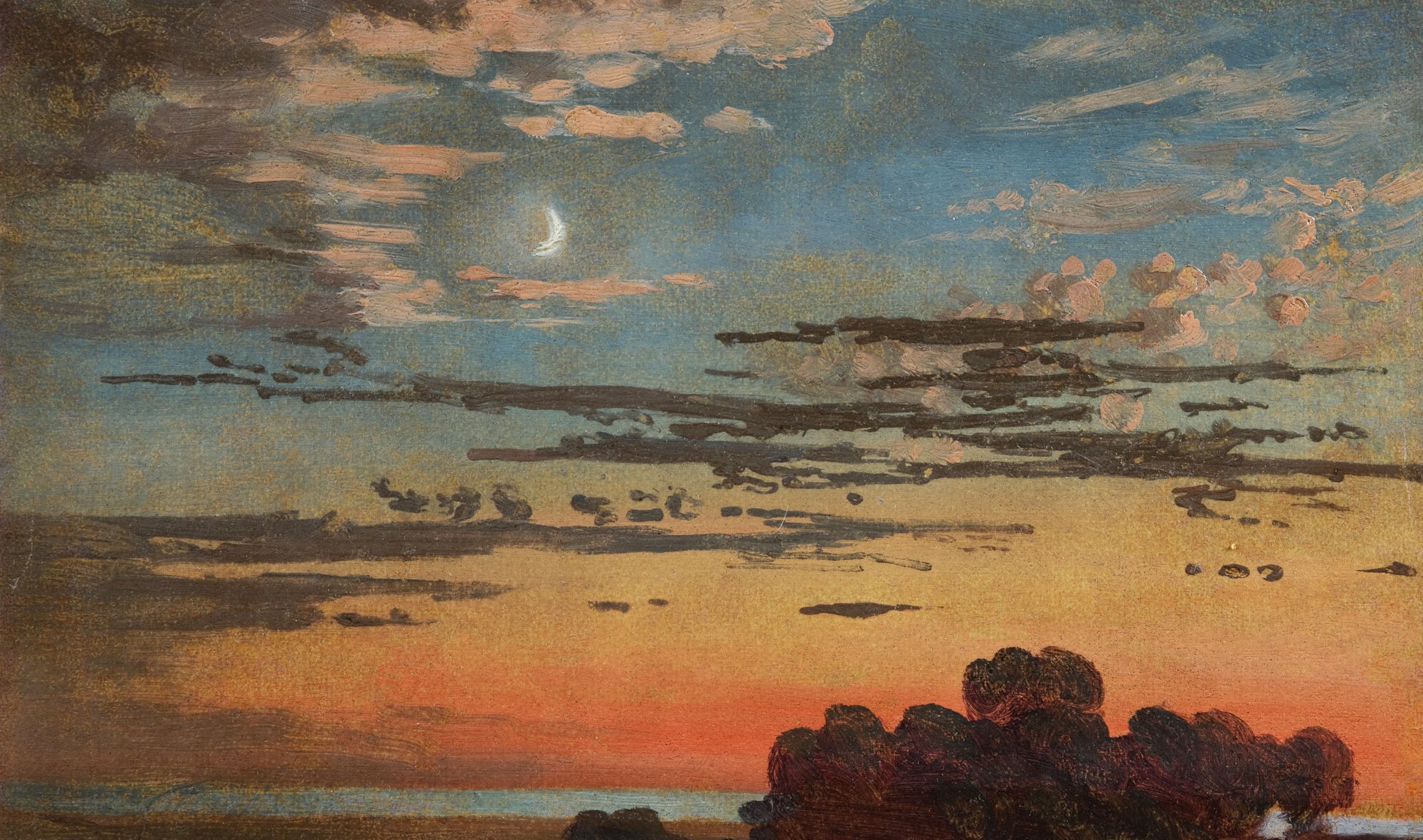 Accueil Catalogues en ligne Sur le motif. Peindre en plein air 1780-1870 VIII. Ciels et effets 105. Pierre-Henri de Valenciennes (Toulouse 1750 – 1819 Paris) Dans son traité Élémens de perspective, Valenciennes recommandait de commencer une esquisse à l’huile en plein air par le ciel, car il est la principale source de lumière dans la nature et donne au paysage sa tonalité générale. Cette rapide étude de nuages appartient à un groupe réalisé par (…) 106. Jean-Honoré Fragonard (Grasse 1732 – 1806 Paris) Vraisemblablement peinte en plein air, Paysage montagneux au coucher du soleil est l’une des œuvres les plus anciennes présentées dans l’exposition. C’est également l’une des très rares études à l’huile de Fragonard qui nous soient parvenues. La rapidité et la spontanéité de la touche sont (…) 107. Anonyme français XVIIIe siècle Cette étude anonyme, qui dépeint des nuages bas planant sur une vallée boisée, pourrait être datée de la fin du XVIIIe siècle. Le caractère discrètement décoratif de la touche qui définit les nuages, leur texture un peu cotonneuse, légèrement poudrée d’orangé et la couche picturale très mince (…) 108. Johann Jakob Frey (Bâle 1813 – 1865 Frascati, Rome) Fils d’un graveur sur cuivre, le peintre suisse Johann Jakob Frey s’installa à Rome en 1836 après une brève formation à Paris et à Munich. Il fit d’innombrables excursions dans la campagne romaine, produisant des études de plein air à l’huile sur lesquelles étaient ensuite basés les paysages (…) 109. Johann Jakob Frey (Bâle 1813 – 1865 Frascati, Rome) Fils d’un graveur sur cuivre, le peintre suisse Johann Jakob Frey s’installa à Rome en 1836 après une brève formation à Paris et à Munich. Il fit d’innombrables excursions dans la campagne romaine, produisant des études de plein air à l’huile sur lesquelles étaient ensuite basés les paysages (…) 110. Johann Jakob Frey (Bâle 1813 – 1865 Frascati, Rome) Fils d’un graveur sur cuivre, le peintre suisse Johann Jakob Frey s’installa à Rome en 1836 après une brève formation à Paris et à Munich. Il fit d’innombrables excursions dans la campagne romaine, produisant des études de plein air à l’huile sur lesquelles étaient ensuite basés les paysages (…) 111. Johann Jakob Frey (Bâle 1813 – 1865 Frascati, Rome) Fils d’un graveur sur cuivre, le peintre suisse Johann Jakob Frey s’installa à Rome en 1836 après une brève formation à Paris et à Munich. Il fit d’innombrables excursions dans la campagne romaine, produisant des études de plein air à l’huile sur lesquelles étaient ensuite basés les paysages (…) 112. John Constable (East Bergholt 1776 – 1837 Londres) Observateur passionné du ciel, John Constable produisit des dizaines d’esquisses à l’huile consacrées aux nuages et aux phénomènes atmosphériques, peintes essentiellement à Hampstead entre 1821 et 1822. Il avait coutume de désigner ces expériences picturales de plein air par le terme « skying », (…) 113. John Constable (East Bergholt 1776 – 1837 Londres) Observateur passionné du ciel, John Constable produisit des dizaines d’esquisses à l’huile consacrées aux nuages et aux phénomènes atmosphériques, peintes essentiellement à Hampstead entre 1821 et 1822. Il avait coutume de désigner ces expériences picturales de plein air par le terme « skying », (…) 114. Anton Sminck Pitloo (Arnhem 1790 – 1837 Naples) Ces deux pendants (cat. 114 et 115) figurant un lever et un coucher de soleil sur un paysage italien démontrent la remarquable sensibilité de Pitloo à l’évanescence des effets de lumière et de couleurs. Fait exceptionnel dans la production de l’artiste, ces études sont signées. Dans les deux (…) 115. Anton Sminck Pitloo (Arnhem 1790 – 1837 Naples) Ces deux pendants (cat. 114 et 115) figurant un lever et un coucher de soleil sur un paysage italien démontrent la remarquable sensibilité de Pitloo à l’évanescence des effets de lumière et de couleurs. Fait exceptionnel dans la production de l’artiste, ces études sont signées. Dans les deux (…) 116. Georges Michel (Paris 1763 – 1843 Paris) Baptisé le « Ruisdael de Montmartre », George Michel fut très influencé par les paysagistes hollandais du XVIIe siècle et il collabora d’ailleurs à la restauration de la collection de peintures néerlandaises du Louvre. Bien que Michel ne connut guère le succès de son vivant, il fut toutefois (…) 117. Simon Denis (Anvers 1755 – 1813 Naples) Cette impressionnante scène de tempête réalisée par Simon Denis porte au revers l’inscription « A Tivoly, Peint de nuit », le nom de l’artiste abrégé et le chiffre « 50 ». L’esquisse fait partie d’un ensemble de cent soixante études de plein air numérotées que Denis conservait dans son atelier (…) 118. Giuseppe de Nittis (Barletta 1846 – 1884 Saint-Germain-en-Laye) Exclu de l’Académie de Naples pour indiscipline, Giuseppe de Nittis passa l’essentiel de ses jeunes années à peindre dans la nature. Ses mémoires rendent compte de sa routine de travail : levé à l’aube, il passait ses journées à peindre en plein air. Observant avec passion les effets (…) 119. Anonyme français XIXe siècle 120. Carl Frederik Aagaard (Odense 1833 – 1895 Copenhague) Installé à Copenhague à l’âge de dix-neuf ans, Aagaard se forma à la gravure à l’Académie, sous la houlette de son frère aîné, lui-même spécialisé dans la gravure sur bois. Il y suivit également des cours de peinture décorative, mais délaissa rapidement l’Académie pour s’intéresser à la peinture (…) 121. Anonyme, peut-être Simon Denis ? (Anvers 1755 – 1813 Naples) Il n’est guère aisé d’attribuer une esquisse non signée, tout particulièrement dans le cas d’une étude de nuages semblable à celle présentée ici. Le revers du mince panneau de bois sur lequel ce mor