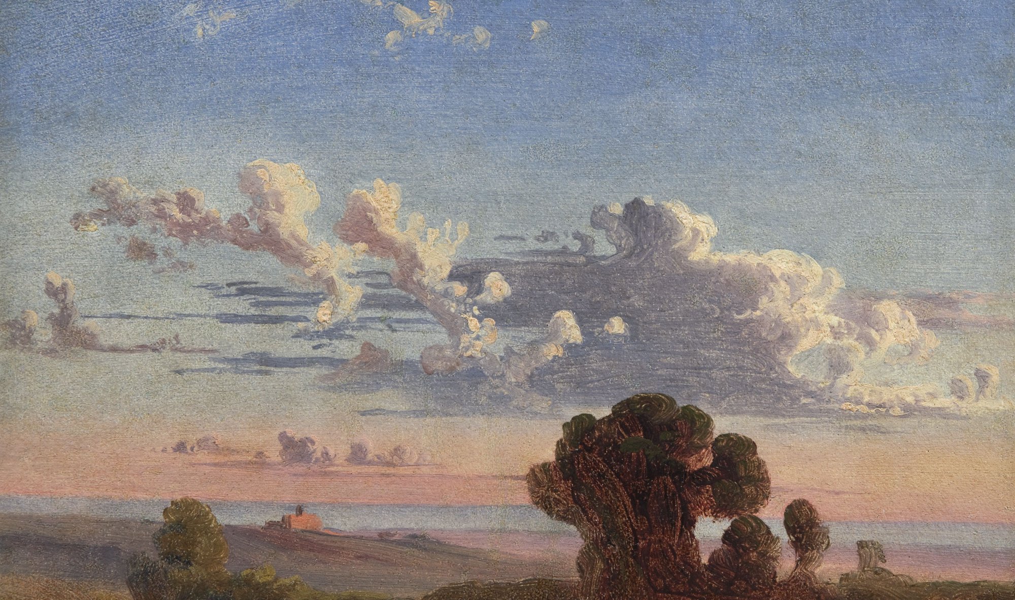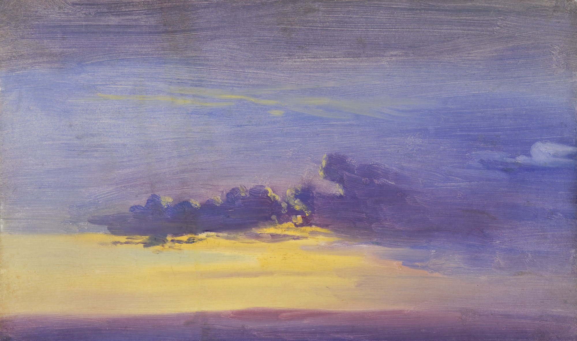 Home Online catalogues True to Nature. Open-air Painting 1780-1870 VIII. Skies and Effects 105. Pierre-Henri de Valenciennes Toulouse 1750 – 1819 Paris In his treatise Élémens de perspective, Valenciennes recommended that painters begin with the sky when making open-air oil sketches, as it is the main source of light in nature and sets the overall tone of a landscape. This quickly painted cloud study is part of a group executed by the artist (…) 106. Jean-Honoré Fragonard Grasse 1732 – 1806 Paris One of the earliest works in the exhibition, Mountain Landscape at Sunset is among the rare surviving oil studies by Fragonard that could plausibly have been painted in the open air. There is an evident speed and spontaneity to the brushwork, and a recent author described it as having the (…) 107. Anonymous French, 18th century Although the maker of this study of low clouds hanging over a wooded valley remains anonymous, it probably dates to the late eighteenth century. This is suggested by the slight decorative touch in the clouds and their cotton-like texture, which gives the impression they have been dusted with an (…) 108. Johann Jakob Frey Basel 1813 – 1865 Frascati, Rome The Swiss painter Johann Jakob Frey was the son of a copper engraver, and settled in Rome in 1836 after brief studies in Paris and Munich. He travelled widely throughout the Italian countryside, producing plein air oil studies to inform the landscapes he sold to a steady market of international (…) 109. Johann Jakob Frey Basel 1813 – 1865 Frascati, Rome The Swiss painter Johann Jakob Frey was the son of a copper engraver, and settled in Rome in 1836 after brief studies in Paris and Munich. He travelled widely throughout the Italian countryside, producing plein air oil studies to inform the landscapes he sold to a steady market of international (…) 110. Johann Jakob Frey Basel 1813 – 1865 Frascati, Rome The Swiss painter Johann Jakob Frey was the son of a copper engraver, and settled in Rome in 1836 after brief studies in Paris and Munich. He travelled widely throughout the Italian countryside, producing plein air oil studies to inform the landscapes he sold to a steady market of international (…) 111. Johann Jakob Frey Basel 1813 – 1865 Frascati, Rome The Swiss painter Johann Jakob Frey was the son of a copper engraver, and settled in Rome in 1836 after brief studies in Paris and Munich. He travelled widely throughout the Italian countryside, producing plein air oil studies to inform the landscapes he sold to a steady market of international (…) 112. John Constable East Bergholt 1776 – 1837 London A systematic student of the sky, John Constable produced dozens of oil sketches of clouds and atmospheric phenomena, mostly painted in Hampstead between 1821-22. The artist called these plein air painterly exercises “skying”, and sought to capture the variety of light effects caused by the (…) 113. John Constable East Bergholt 1776 – 1837 London A systematic student of the sky, John Constable produced dozens of oil sketches of clouds and atmospheric phenomena, mostly painted in Hampstead between 1821-22. The artist called these plein air painterly exercises “skying”, and sought to capture the variety of light effects caused by the (…) 114. Anton Sminck Pitloo Arnhem 1790 – 1837 Naples These pendants (cat. 114 and 115) representing a sunrise and a sunset in an Italian landscape demonstrate Pitloo’s wonderful sensitivity for fleeting effects of light and colour. The studies are signed, a rarity in the artist’s oeuvre. In both works, a strip of clear light blue indicates the sea (…) 115. Anton Sminck Pitloo Arnhem 1790 – 1837 Naples These pendants (cat. 114 and 115) representing a sunrise and a sunset in an Italian landscape demonstrate Pitloo’s wonderful sensitivity for fleeting effects of light and colour. The studies are signed, a rarity in the artist’s oeuvre. In both works, a strip of clear light blue indicates the sea (…) 116. Georges Michel Paris 1763 – 1843 Paris Known as the “Ruisdael of Montmartre”, George Michel was greatly influenced by the Dutch landscape painters of the seventeenth century and even worked restoring the collection of Netherlandish paintings of the Louvre. Despite never achieving much success during his lifetime, Michel was admired (…) 117. Simon Denis Antwerp 1755 – 1813 Naples A Tivoly, Peint de nuit (In Tivoli, painted at night) is written on the back of this rather spectacular view of a tempest by Simon Denis, next to an abbreviation of his name and the number 50. The sketch is part of a group of 160 numbered open-air studies which Denis kept in his studio and (…) 118. Giuseppe de Nittis Barletta 1846 – 1884 Saint-Germain-en-Laye Expelled from the Academy in Naples due to unruly behaviour, Giuseppe de Nittis spent much of his early years working in nature. In his memoirs, the artist describes his routine, waking up before dawn to spend his days painting in the open air. A keen observer of atmospheric effects, he wrote (…) 119. Anonymous French, 19th century 120. Carl Frederik Aagaard Odense 1833 – 1895 Copenhagen Aagaard moved to Copenhagen at the age of nineteen to study printmaking at the Academy, under the guidance of his older brother who specialized in woodcuts. There he also studied decorative painting, but soon abandoned classes at the Academy to take up landscape painting and trained under P.C. (…) 121. Anonymous, possibly Simon Denis Antwerp 1755 – 1813 Naples Unsigned oil sketches are notoriously difficult to attribute, and cloud studies such as these prove particularly challenging. The name Simon Denis is inscribed on the back of the thin wooden panel on which this fragment of sky was skilfully and rapidly painted, but this attribution is hard to (…) 122. Jean-Charles Rémond Paris 1795 – 1875 Paris Rémond studied alongside Michallon (cat. 21) at the École des Beaux-Arts and, after winning the Prix de 