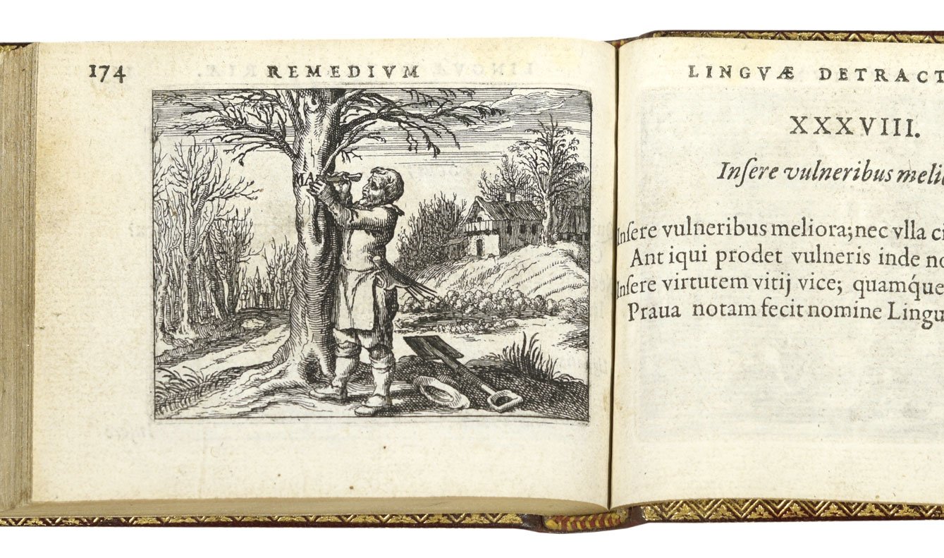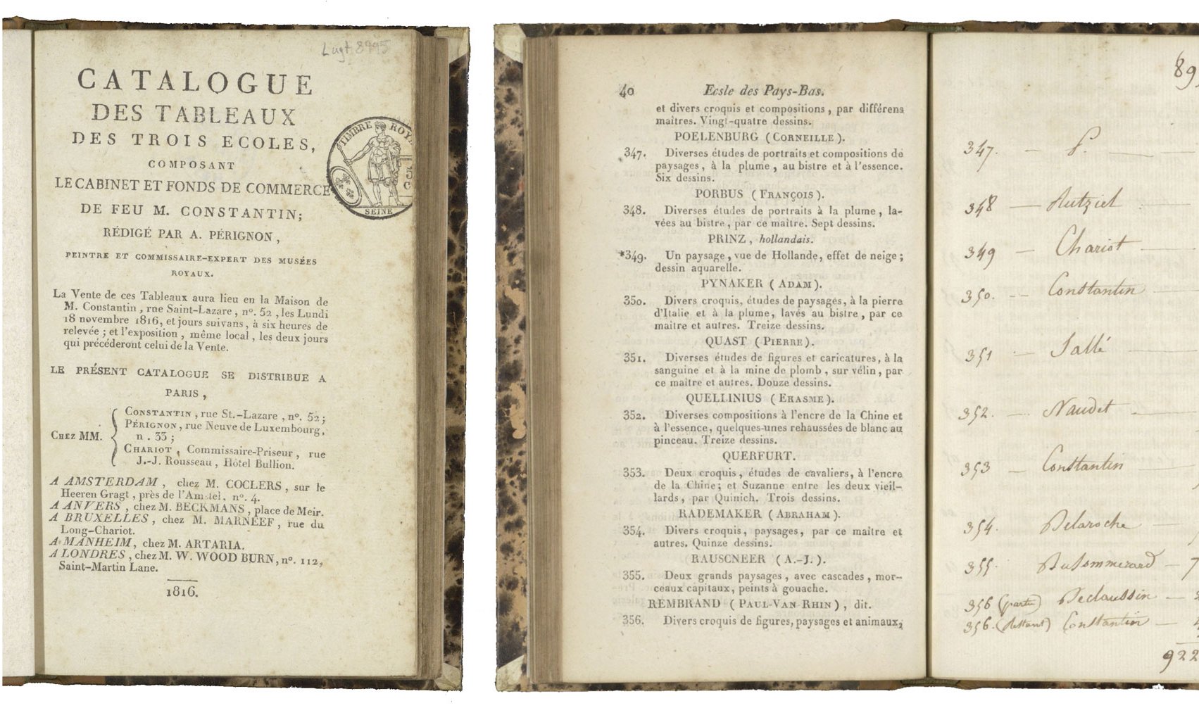 Accueil Catalogues en ligne Un œil passionné. Douze ans d’acquisitions de Ger Luijten X. Livres rares 130. Antonius de Burgundia Bruges vers 1594 – 1657 Bruges Né à Bruges, bâtard issu de la famille ducale de Bourgogne, et prélat, Antoine de Bourgogne publia deux livres d’emblèmes. Un exemplaire du Mundi lapis lydius (première édition de 1639) fut acquis par Frits Lugt, qui vouait un intérêt tout particulier à ce genre d’ouvrages illustrés. Cet (…) 131. Constantijn Huygens I La Haye 1596 – 1687 La Haye Secrétaire du stathouder, poète, compositeur et amateur d’art, Constantijn Huygens compte parmi les hommes les plus complets du XVIIe siècle néerlandais. Cette édition de format oblong du recueil réunissant sa poésie de jeunesse, les « Six livres des heures d’oisiveté », inclut des poèmes en (…) 132. [Crispijn de Passe I] Arnemuiden 1564 – 1637 Utrecht L’un des graveurs hollandais les plus prolifiques du XVIIe siècle, Crispijn de Passe I se distingua entre autres dans le genre du livre d’emblèmes. Son Thronus cupidinis (avec h) est entièrement dédié au thème de l’amour et sa première édition parue en 1617 n’est connue qu’en quelques (…) 133. Artiste anonyme L’un des graveurs hollandais les plus prolifiques du XVIIe siècle, Crispijn de Passe I se distingua entre autres dans le genre du livre d’emblèmes. Son Thronus cupidinis (avec h) est entièrement dédié au thème de l’amour et sa première édition parue en 1617 n’est connue qu’en quelques (…) 134. Gabriel Rollenhagen Magdebourg 1583 – 1619 Magdebourg Né à Magdebourg, formé à Leipzig et Leyde, le poète allemand Gabriel Rollenhagen se spécialisa dans les poèmes brefs accompagnant les images de livres d’emblèmes. Le Nucleus emblematorum selectissimorum de 1611 est son livre le plus connu et la présente édition « mis[e] en vers françois par un (…) 135. Filippo Buonanni Rome 1638 – 1725 Rome Le Jésuite romain Filippo Buonanni se distingua par ses publications scientifiques, notamment le traité de coquillages et d’escargots présenté ici, plus connu pour la beauté des illustrations gravées à l’eau-forte que pour l’exactitude de ses conclusions scientifiques. La plupart des planches se (…) 136. René Descartes La Haye-en-Touraine 1596 – 1650 Stockholm Cet abrégé de musique est le premier texte connu de Descartes, écrit en 1618 aux Pays-Bas pour son maître, puis ami, le physicien et philosophe Isaac Beeckman (1588–1637). Cette première édition, qui publie le texte original en latin, fut suivie par plusieurs autres, en latin, anglais, (…) 137. Giambattista Piazzetta Venise 1683 – 1754 Venise Publié plusieurs années après la mort du peintre vénitien, ce manuel d’artiste comporte un frontispice allégorique, un autoportrait gravé à l’eau-forte par lui-même, un texte instructif et vingt-quatre compositions basées sur des dessins à la pierre noire, faites par Piazzetta dans les années où (…) 138. Catalogues de vente du cabinet et du fonds de Guillaume-Jean Constantin, 1816 et 1817 Frits Lugt avait formé une collection exceptionnelle de catalogues de vente dont il fit don à l’institut d’histoire de l’art qu’il contribua à fonder à La Haye, le Rijksbureau voor Kunsthistorische Documentatie. Après ce don, la bibliothèque de la rue de Lille ne s’enrichit que de peu d’autres (…) 139. Edmond et Jules de Goncourt Nancy 1822 – 1896 Champrosay et Paris 1830 – 1870 Paris Le décès à Auteuil de Paul Gavarni (1804–1866) fut un choc pour les frères Goncourt. Apprenant la nouvelle par les journaux, l’idée d’écrire un ouvrage sur le « grand peintre de la vie moderne », cet homme qu’ils considéraient comme une figure paternelle, est exprimée dès le jour de (…)