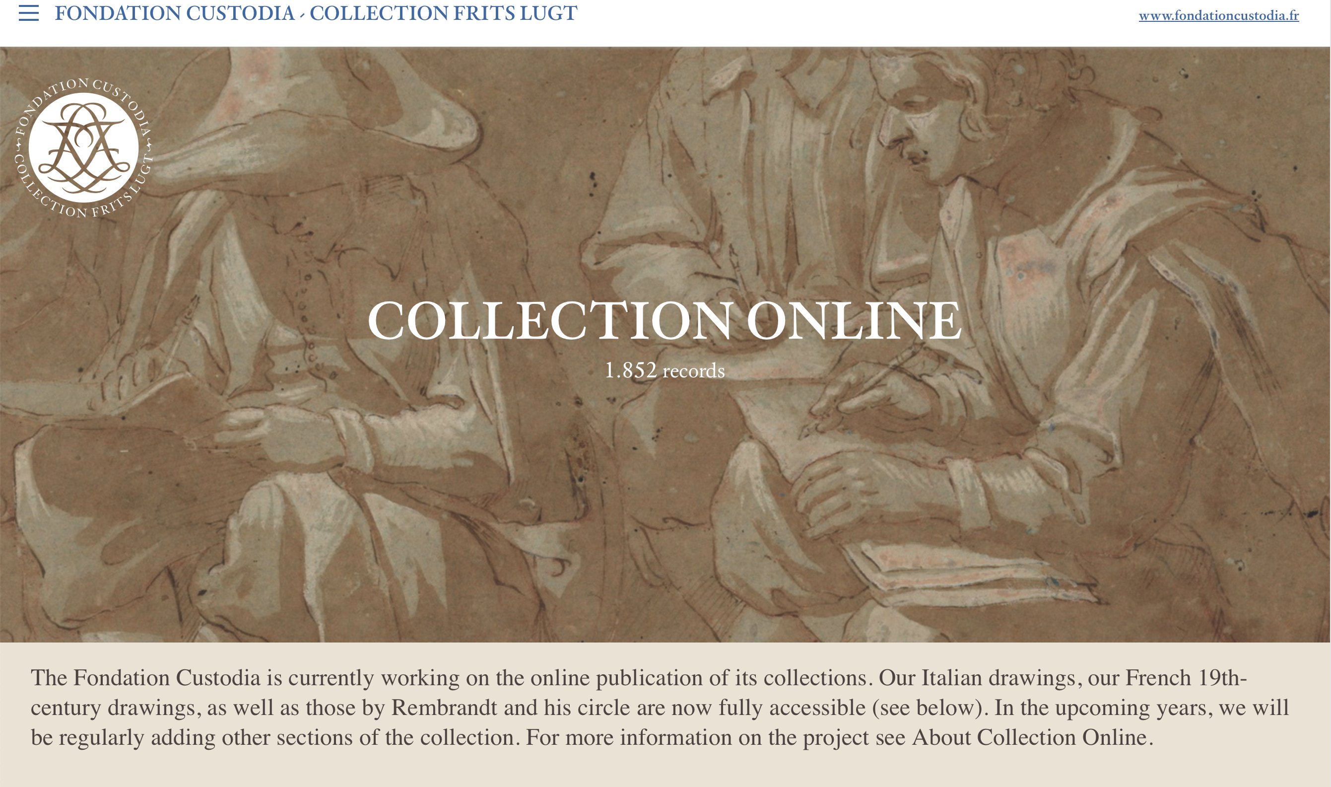 Home Collection Presentation Learn more about the different components of the Frits Lugt Collection. Collection Online Access the collections database. The Fondation Custodia has published part of its collections online. Currently the Italian drawings, our French 19th-century drawings, as well as those by Rembrandt and his circle are available (more than 1800 records). Image Order Photographs of works in the collection of the Fondation Custodia are available to the public, on request and free of charge. Conservation Workshop The conservation workshop for graphic art In the 1960s, Frits Lugt started to pay more attention to the conservation of the collection of works on paper.