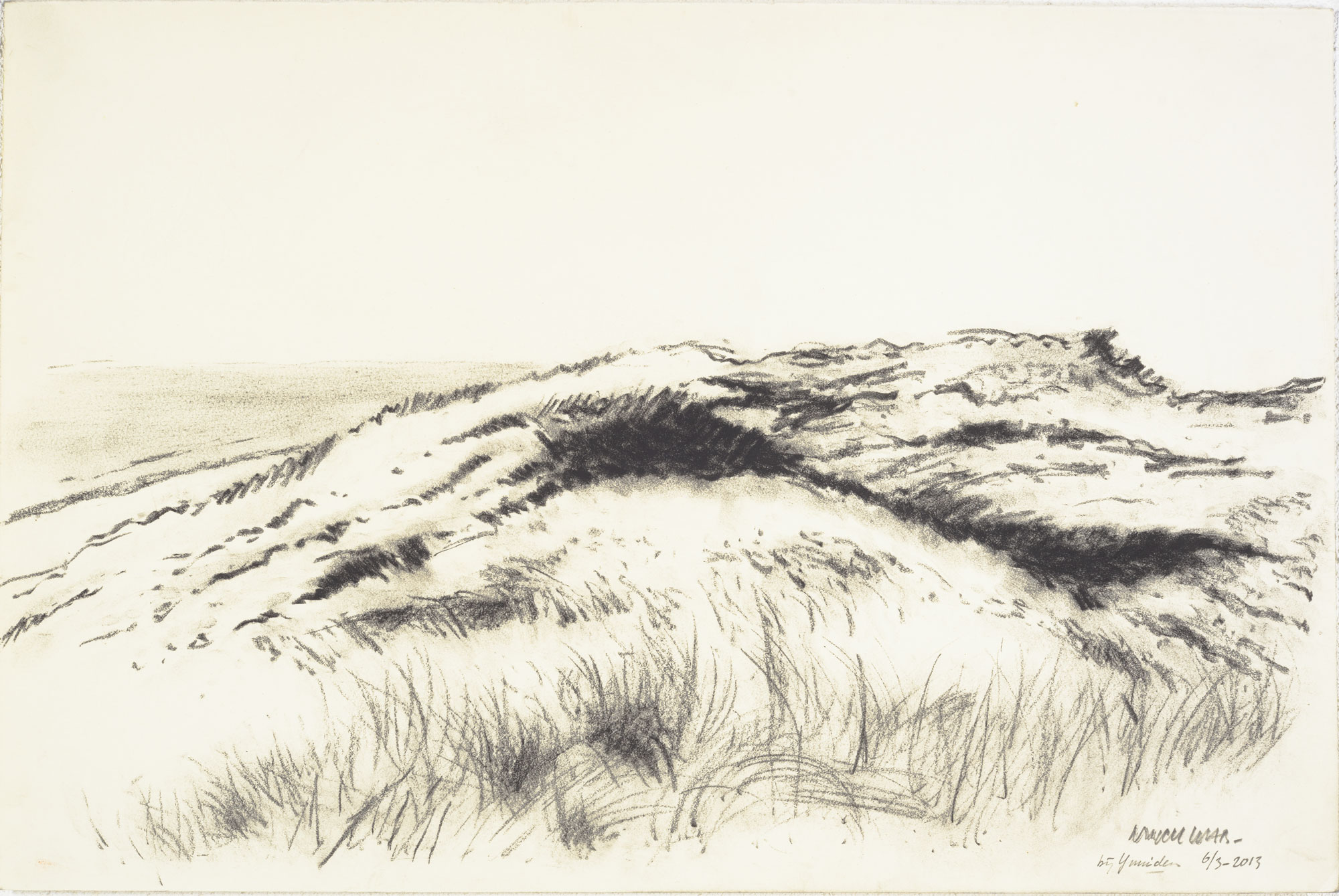 Présentation du livre Dirck Nab - Paysage dessiné le jeudi 25 mai 2023 à 18h La publication ainsi qu’une sélection d’œuvres de l’artiste seront également présentées au public le vendredi 26 mai 2023 de 12h à 17h, à l’Atelier Néerlandais. « Capter quelque chose d’insaisissable, un moment fugace dans le temps qui avance. »Dirck Nab Dirck Nab dessine dans la nature, sa véritable source d’inspiration. Il travaille notamment dans les dunes de la Hollande septentrionale, près de son atelier de Bakkum. Ses dessins, à coups de traits vigoureux au fusain ou à la craie, se caractérisent par un clair-obscur puissant. L’ouvrage Dirck Nab – Paysage dessiné fut l’un des nombreux projets qui tenaient à cœur à Ger Luijten, directeur de la Fondation Custodia depuis 2010 et disparu brutalement en décembre 2022. Ger Luijten et Huigen Leeflang (conservateur au Cabinet des Estampes du Rijksmuseum), tous deux grands amateurs de l’oeuvre de Dirck Nab, avaient acquis un carnet de croquis grand format, ainsi que des gravures sur bois et des dessins de l’artiste pour le Rijksmuseum à Amsterdam. Panorama, 2023 Craie, 30 × 84 cm© Henni van Beek « J’essaie d’atteindre l’essentiel ; les contours du paysage dans lequel je me trouve, sans réfléchir, en réagissant intuitivement à mon environnement. Je fais cela avec les moyens les plus simples : un petit bout de craie, de fusain ou un pinceau avec de l’encre de Chine et, bien sûr, du papier de bonne qualité. Je travaille de manière aussi concentrée que possible et très rapidement, car ce qui apparaît sur le papier doit faire mouche. Il ne faut rien de superflu sur le dessin. » « On s’abandonne en quelque sorte au paysage. On ne veut pas faire comme si on le connaissait mieux que lui-même. En fait, on lui est soumis. »Dirck Nab « Dirck Nab aborde le paysage comme s’il le voyait pour la première fois, il laisse émerger « le sentiment pur » qui ne tolère ni répétition ni intellectualisation. Il a très peu de temps pour capter le rythme des dunes. Dirck fait un scan personnel, pour ainsi dire ; sur sa propre fréquence, comme les ondes radio. Il distille ainsi des variations infinies à partir d’un panorama qui pourrait sembler monotone. Ce que nous voyons est toujours nouveau, ce n’est que par habitude ou par indifférence qu’on pouvait le juger comme « déjà vu ». Ses dessins de dunes sont une constante renaissance. L’immobilité des dunes est chassée par le mouvement constant des nuages et des vagues. »Philippe Garnier (écrivain et journaliste français) Plage et mer, 2022 Fusain, 100 × 200 cm© Henni van Beek Amas de nuages, 2019 Craie, 32 × 45 cm© Henni van Beek Dirck Nab (1940) a grandi à Neerbosch près de Nimègue, « au pays de la Meuse et du Waal » et a suivi une formation de peintre à la Vrije Academie à La Haye, sous la direction de George Lampe. Ses oeuvres ont fait l’objet de plusieurs publications et ont intégré de nombreuses collections, privées et muséales, dont celle du Rijksmuseum, à Amsterdam. Dans le livre Dirck Nab – Paysage dessiné, la main devient visible. La main qui note, s’emporte, s’arc-boute, joue ou s’emballe avec le vent. Les dessins de Dirck Nab sont accompagnés d’écrits de Dirck Nab lui-même, de textes de Huigen Leeflang (conservateur au Cabinet des Estampes du Rijksmuseum), Sjoerd Kuyper (écrivain), Ineke Holzhaus (poète), Theo Olthuis (poète), Harry ter Balkt (poète) et Taco Dibbits (directeur du Rijksmuseum). Ce livre a été réalisé grâce au soutien de la Fondation Custodia, du Adriaan Roland Holst Fonds, de Gifted Art et du Jaap Harten Fonds. Dirck Nab – Paysage dessinéÉditions Waanders, Zwolle, 202396 pages, 60 illustrations en couleur, 22 × 33 cm, relié, en françaisISBN 978 94 6262 477 1Prix : 29,95 €(en vente dans la librairie de la Fondation Custodia) COMMANDER Pour commander cet ouvrage, merci de compléter le formulaire ci-dessous. Une facture vous sera envoyée dans les meilleurs délais, incluant les frais d’expédition. Le règlement se fera par virement bancaire. Ne renseignez pas ce champ Ouvrage demandé Quantité (obligatoire) Votre prénom (obligatoire) Votre nom (obligatoire) Société Adresse (obligatoire) Code postal Veuillez laisser ce champ vide : Ville (obligatoire) Pays (obligatoire) Email (obligatoire) Téléphone Remarques Les informations recueillies à partir de ce formulaire sont destinées à la Fondation Custodia afin qu’elle puisse traiter votre commande. Conformément à la loi « Informatique et Libertés » du 6 janvier 1978 modifiée et au Règlement Général sur la Protection des Données, vous disposez sur vos données d’un droit d’accès, de rectification, de limitation, de portabilité et de suppression. Pour exercer ces droits, vous pouvez contacter la Fondation Custodia, 121 rue de Lille, 75007 Paris, +33 (0)1 47 05 75 19, coll.lugt@fondationcustodia.fr. En savoir plus sur notre Politique de confidentialité. ANNULER