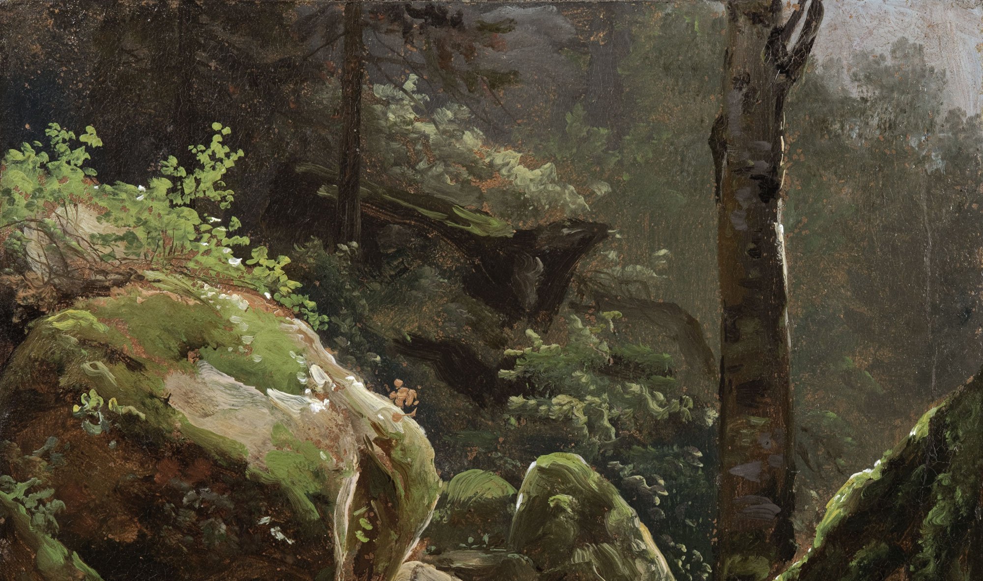 Home Online catalogues True to Nature. Open-air Painting 1780-1870 II. Trees 11. Pierre-Henri de Valenciennes Toulouse 1750 – 1819 Paris A pivotal figure in the development of landscape painting, Valenciennes effectively elevated its status through his promotion of the paysage historique. In his work as a painter, teacher and author, he advocated that such composed landscapes should be based on the direct study of nature. His (…) 12. Simon Denis Antwerp 1755 – 1813 Naples “One becomes very small and modest when one understands Nature.” The remarkable scale of this tree study evokes the reverence towards nature described by Simon Denis in his undated manuscript preserved in the Fondation Custodia. An early practitioner of plein air painting, the Flemish artist (…) 13. Anonymous French(?), first half of the 19th century In this anonymous tree study, delicately rendered foliage covers almost the entire surface of the paper, giving it a somewhat decorative feel. It appears to be a cropped view of the top of a tree, painted from a high vantage point. The artist could have sketched it while perched on a branch. 14. Johan Christian Dahl Bergen 1788 – 1857 Dresden The son of a fisherman, Dahl rose from humble beginnings as a house painter in Bergen to become the first Norwegian artist of international renown. In 1811, he moved to Copenhagen to study at the Academy. There he befriended Eckersberg, who encouraged him to paint out-of-doors, and studied the (…) 15. Robert Léopold Leprince Paris 1800 – 1847 Chartres Robert Léopold Leprince belonged to a family of landscape painters and lithographers. He trained under his father, Anne-Pierre, and his older brother Auguste-Xavier (cat. 145), before becoming the teacher of his younger sibling Gustave (1810–1837). The brothers shared an atelier in Paris at “la (…) 16. Joseph Mallord William Turner London 1775 – 1851 Chelsea Turner was only fourteen when he entered the Royal Academy Schools, and exhibited his first picture the following year. A prolific draughtsman, he amassed over 30,000 drawings and watercolours throughout his long career. He seldom painted in oils out-of-doors, however, arguing that it took up (…) 17. Joseph Mallord William Turner London 1775 – 1851 Chelsea Turner was only fourteen when he entered the Royal Academy Schools, and exhibited his first picture the following year. A prolific draughtsman, he amassed over 30,000 drawings and watercolours throughout his long career. He seldom painted in oils out-of-doors, however, arguing that it took up (…) 18. John Constable East Bergholt 1776 – 1837 London Unlike his contemporary Turner, Constable was an enthusiastic painter of plein air oil sketches. He systematically painted out-of-doors throughout most of his career, capturing both panoramic landscape views and close-up details, such as his exceptional series of cloud studies (cat. 112 and (…) 19. John Constable East Bergholt 1776 – 1837 London Unlike his contemporary Turner, Constable was an enthusiastic painter of plein air oil sketches. He systematically painted out-of-doors throughout most of his career, capturing both panoramic landscape views and close-up details, such as his exceptional series of cloud studies (cat. 112 and (…) 20. Anonymous French, 19th century This oil on paper study functions as a ‘portrait’ of an individual tree. While the trees in the background are roughly indicated with single brushstrokes in thinned-downed oils, the main protagonist is rendered with painstaking brushwork and great naturalism, with particular attention being paid (…) 21. Achille-Etna Michallon Paris 1796 – 1822 Paris Born into a family of artists, Michallon was a precocious talent. He joined the École des Beaux-Arts in 1810, where he studied perspective under Valenciennes, and first exhibited at the Paris Salon in 1812. A decade later, just a month short of his twenty-sixth birthday, the artist succumbed to (…) 22. François Diday, attributed to Geneva 1802 – 1877 Geneva This intriguing study painted on canvas is attributed to François Diday, a pioneer of Swiss landscape painting along with his pupil Alexandre Calame (cat. 43). After his initial training in Geneva, Diday spent a few months in the Paris atelier of Baron Gros in 1823. He then travelled to Italy in (…) 23. Anton Sminck Pitloo Arnhem 1790 – 1837 Naples An inscription on the back of this study identifies it as a work by “Anton Pitloo – Father of the modern Neapolitan school”. Also known as the School of Posilippo, it was not a formal school but a loose group of artists which gathered around Pitloo and his student Giacinto Gigante (1806– 1876). (…) 24. Janus La Cour Thimagard, near Ringkøbing 1837 – 1909 Odder, Denmark A second-generation Eckersberg follower, the Danish landscape painter Janus La Cour was greatly influenced by his friend and mentor P.C. Skovgaard (1817–1875). He joined the Copenhagen Academy in 1857, and received several bursaries that allowed him to travel to France, Switzerland and Italy, (…) 25. Fritz Petzholdt Copenhagen 1805 – 1838 Patras Fritz Petzholdt attended the Academy in Copenhagen between 1824-29. He also took private tuitions from Eckersberg, and was the only one of his pupils to devote himself exclusively to landscape. From 1830, he was mainly active in Italy, where he joined the Danish artists’ colony which had formed (…) 26. Carl Morgenstern Frankfurt-am-Main 1811 – 1893 Frankfurt-am-Main Morgenstern’s view also omits the architectural landmarks of Ariccia, focusing instead on a stretch of ‘untouched’ nature. It was probably painted in the park of the Villa Chigi, a favourite stop for Grand Tourists attracted by its wooded landscape which, according to legend, had been the (…) 27. Friedrich Gauermann Miesenbach 1807 – 1862 Vienna The Austrian landscape and animal painter Friedrich Gauermann received his initial artistic training from his father, Jacob Ga
