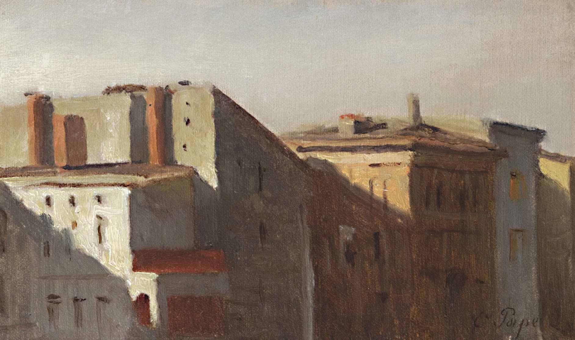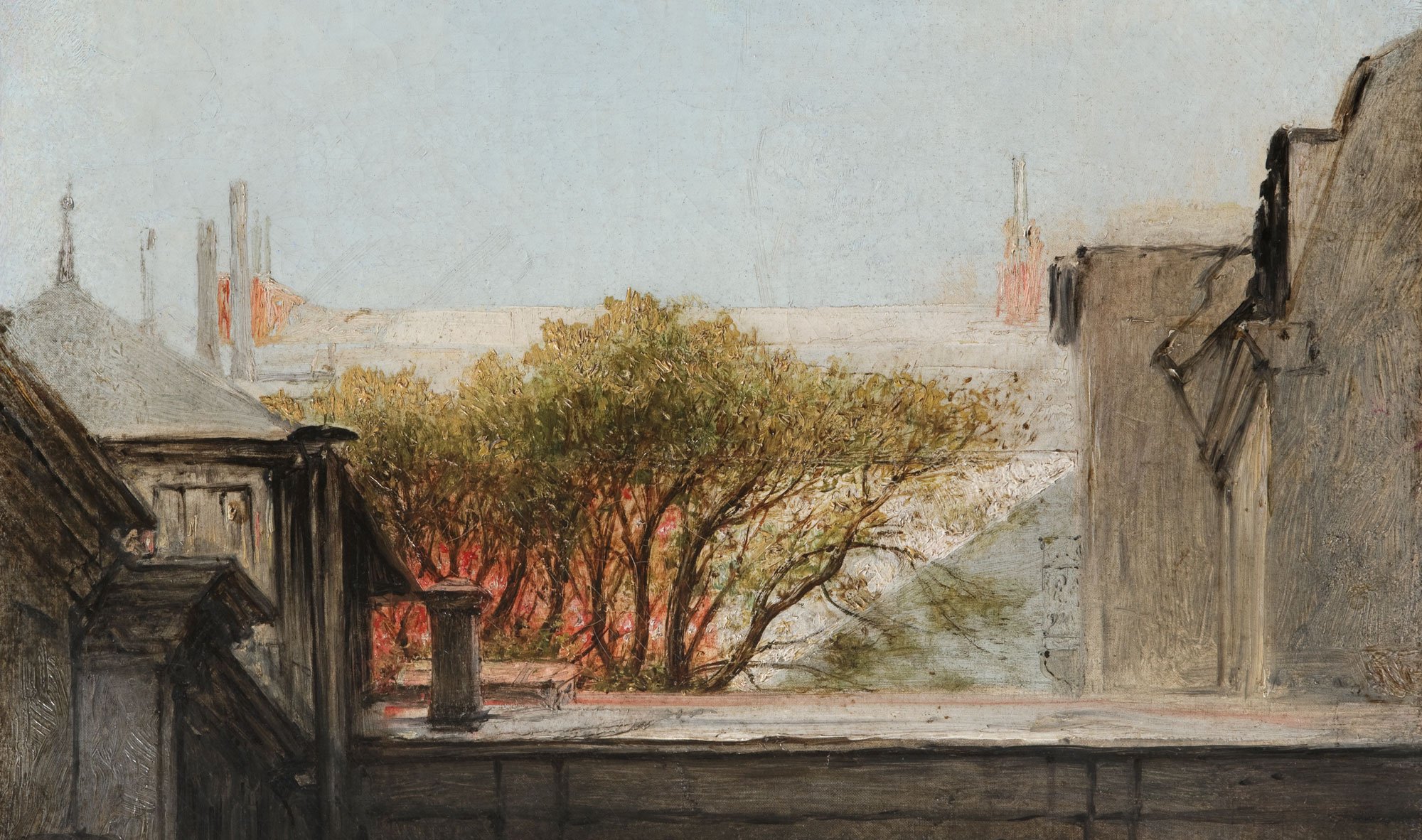 Accueil Catalogues en ligne Sur le motif. Peindre en plein air 1780-1870 IX. Toits, fenêtres, cours et ruines 132. Pierre Antoine Demachy (Paris 1723 – 1807 Paris) Extrêmement rare, cette œuvre est la seule étude à l’huile sur papier attribuée avec certitude au peintre d’architecture Pierre-Antoine Demachy. L’analyse du dessin sous-jacent, encore partiellement visible sous la couche picturale, a été rendue possible par un examen en réflectographie (…) 133. John Constable (East Bergholt 1776 – 1837 Londres) Constable quitta le Suffolk en 1817 pour s’installer à Londres. Maria, son épouse, étant de santé fragile, la famille prit l’habitude, à partir de 1819, de passer l’été à Hampstead dont l’air était plus sain. Au début du XIXe siècle, Hampstead, situé à une dizaine de kilomètres de Londres, (…) 134. Frederik Rohde (Copenhague 1816 – 1886 Copenhague) Formé à l’Académie de Copenhague entre 1830 et 1834, Rohde y fut l’élève de J. L. Lund (1777–1867) et sollicita également les conseils de Christen Købke (1810–1848). Une bourse de l’Académie lui permit, entre 1842 et 1847, de visiter l’Allemagne, la Suisse, le Tyrol et l’Italie. Il passa (…) 135. Constantin Hansen (Rome 1804 – 1880 Copenhague) Né à Rome, puis baptisé à Vienne, Constantin Hansen doit son prénom à sa marraine, Constanze Weber (1762–1842), veuve de Mozart. Les premiers encouragements à peindre lui vinrent de son père, le portraitiste Hans Hansen (1769–1828). Entré à l’Académie de Copenhague à l’âge de douze ans, Hansen y (…) 136. Frederik Sødring (Aalborg 1809 – 1862 Hellerup) Sødring entra à l’Académie de Copenhague en 1825. Il y eut pour condisciple Christen Købke, avec qui il devait par la suite partager un atelier. Profondément influencé par le paysage romantique allemand et par l’œuvre de Johan Christian Dahl (cat. 14), Sødring fit ses débuts à Charlottenborg en (…) 137. Louis Jules Gustave Caron (Paris 1806 – 1881 Bordeaux) Formé à Paris par Jean-Charles-Joseph Rémond (cat. 122), Jules Caron partit ensuite pour Bordeaux où il exécuta ces deux pendants en février 1852. Il s’installa la même année sur le bassin d’Arcachon. Une inscription tracée dans la matière encore fraîche, dans l’angle inférieur droit de la (…) 138. Louis Jules Gustave Caron (Paris 1806 – 1881 Bordeaux) Formé à Paris par Jean-Charles-Joseph Rémond (cat. 122), Jules Caron partit ensuite pour Bordeaux où il exécuta ces deux pendants en février 1852. Il s’installa la même année sur le bassin d’Arcachon. Une inscription tracée dans la matière encore fraîche, dans l’angle inférieur droit de la (…) 139. Théodore Rousseau (Paris 1812 – 1867 Barbizon) Rousseau fut lui aussi élève de Jean-Charles-Joseph Rémond (cat. 122) dont il intégra l’atelier en fin d’année 1826, peu après que le maître fût rentré d’Italie. Peu friand de l’esthétique néo-classique de Rémond, le jeune artiste fut néanmoins fortement influencé par ses études à l’huile (…) 140. Théodore Rousseau (Paris 1812 – 1867 Barbizon) Rousseau fut lui aussi élève de Jean-Charles-Joseph Rémond (cat. 122) dont il intégra l’atelier en fin d’année 1826, peu après que le maître fût rentré d’Italie. Peu friand de l’esthétique néo-classique de Rémond, le jeune artiste fut néanmoins fortement influencé par ses études à l’huile (…) 141. Théodore Rousseau (Paris 1812 – 1867 Barbizon) Rousseau fut lui aussi élève de Jean-Charles-Joseph Rémond (cat. 122) dont il intégra l’atelier en fin d’année 1826, peu après que le maître fût rentré d’Italie. Peu friand de l’esthétique néo-classique de Rémond, le jeune artiste fut néanmoins fortement influencé par ses études à l’huile (…) 142. Max Hauschild (Dresde 1810 – 1895 Naples) Entré comme étudiant à l’école d’architecture de l’Académie de Dresde en 1826, Hauschild devait ensuite y enseigner lui-même en tant qu’assistant de 1838 à 1852. Il fit son premier voyage en Italie en 1833. Il y revint à deux reprises, en 1841 puis en 1846 avant de s’installer définitivement à (…) 143. Johan Thomas Lundbye (Kalundborg, Danemark 1818 – 1848 Bedstedt, Danemark) Par les premiers mots qu’il écrit dans son journal pour l’année 1842-1843, Lundbye dit s’être donné pour objectif de « peindre mon cher Danemark, mais avec toute la simplicité et la modestie qui le caractérisent ». Hormis un bref voyage en Italie en 1845-1846, l’artiste passa l’essentiel de sa (…) 144. Robert Léopold Leprince (Paris 1800 – 1847 Chartres) Cette modeste vue d’une cour de ferme exécutée par Robert Léopold Leprince regorge de détails. L’artiste prit un plaisir manifeste à restituer les couleurs et les textures de ce rustique édifice en pierres et les feuilles vert-printemps confèrent à l’œuvre une remarquable fraîcheur. Paisiblement (…) 145. Auguste-Xavier Leprince (Paris 1799 – 1826 Nice) Frère aîné et maître de Robert Léopold (cat. 144), Auguste-Xavier Leprince fut essentiellement connu en tant que peintre de genre. Il ne s’en intéressa pas moins à un large éventail de sujets, abordant ainsi le portrait, les scènes de rue parisiennes et les paysages de campagne. Âgé d’à peine (…) 146. Thomas Fearnley (Frederikshald, aujourd’hui Halden 1802 – 1842 Munich) Situé à quelques vingt kilomètres au nord-ouest de Dresde, Scharfenberg est l’un des plus anciens châteaux de Saxe et fut, au début du XIXe siècle, une destination très prisée des romantiques allemands. Concentrant son attention sur une cour délabrée, Fearnley tourne ici le dos aux vues (…) 147. Walter Moras (Berlin 1856 – 1925 Bad Harzburg) Walter Moras se forma auprès du paysagiste et mariniste Hermann Eschke (1823–1900) qui l’encouragea à voyager et à peindre en plein air. Alors âgé de dix-huit ans, i