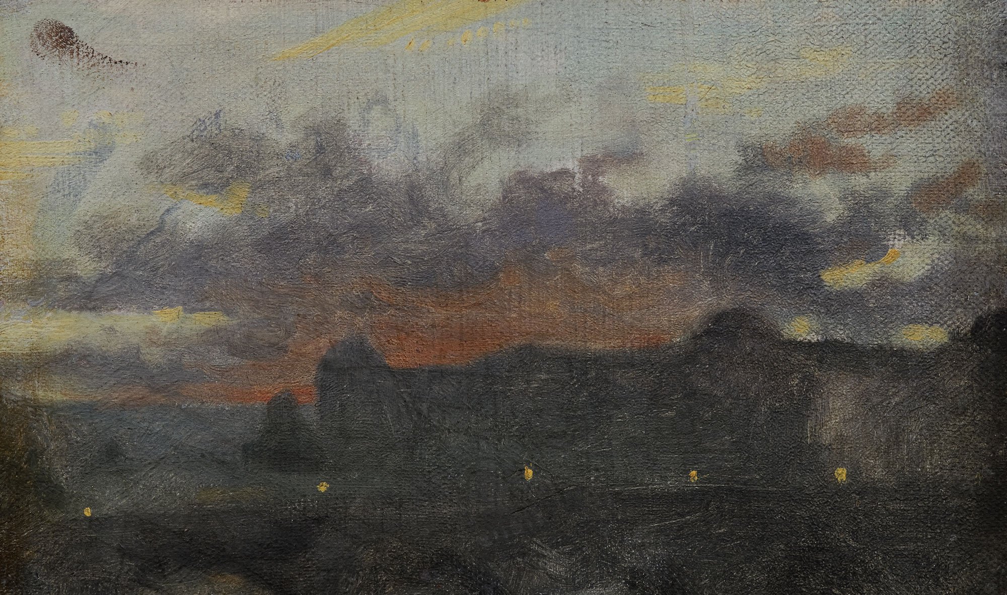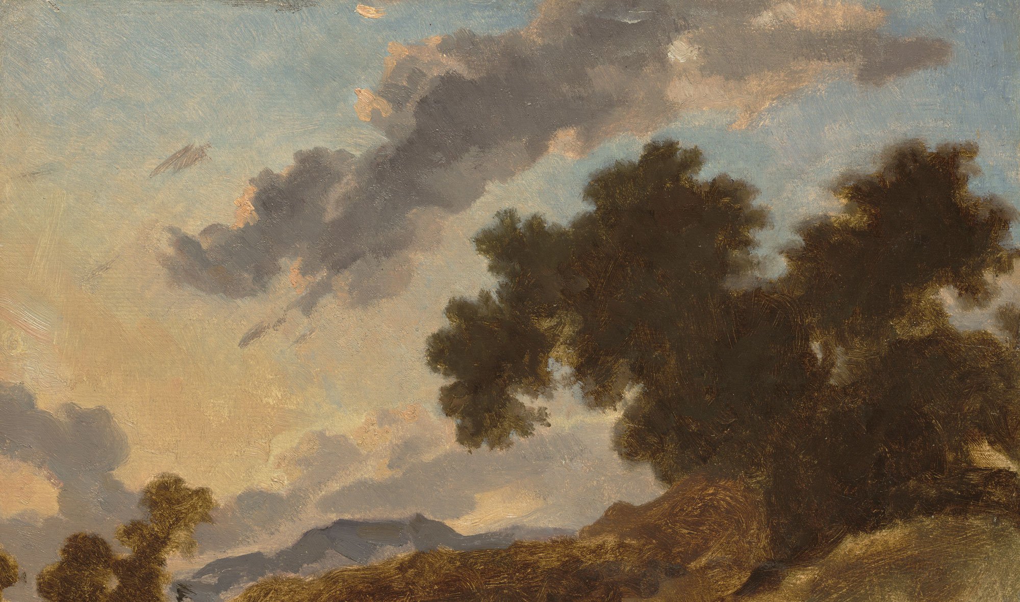 Home Online catalogues True to Nature. Open-air Painting 1780-1870 VIII. Skies and Effects 105. Pierre-Henri de Valenciennes Toulouse 1750 – 1819 Paris In his treatise Élémens de perspective, Valenciennes recommended that painters begin with the sky when making open-air oil sketches, as it is the main source of light in nature and sets the overall tone of a landscape. This quickly painted cloud study is part of a group executed by the artist (…) 106. Jean-Honoré Fragonard Grasse 1732 – 1806 Paris One of the earliest works in the exhibition, Mountain Landscape at Sunset is among the rare surviving oil studies by Fragonard that could plausibly have been painted in the open air. There is an evident speed and spontaneity to the brushwork, and a recent author described it as having the (…) 107. Anonymous French, 18th century Although the maker of this study of low clouds hanging over a wooded valley remains anonymous, it probably dates to the late eighteenth century. This is suggested by the slight decorative touch in the clouds and their cotton-like texture, which gives the impression they have been dusted with an (…) 108. Johann Jakob Frey Basel 1813 – 1865 Frascati, Rome The Swiss painter Johann Jakob Frey was the son of a copper engraver, and settled in Rome in 1836 after brief studies in Paris and Munich. He travelled widely throughout the Italian countryside, producing plein air oil studies to inform the landscapes he sold to a steady market of international (…) 109. Johann Jakob Frey Basel 1813 – 1865 Frascati, Rome The Swiss painter Johann Jakob Frey was the son of a copper engraver, and settled in Rome in 1836 after brief studies in Paris and Munich. He travelled widely throughout the Italian countryside, producing plein air oil studies to inform the landscapes he sold to a steady market of international (…) 110. Johann Jakob Frey Basel 1813 – 1865 Frascati, Rome The Swiss painter Johann Jakob Frey was the son of a copper engraver, and settled in Rome in 1836 after brief studies in Paris and Munich. He travelled widely throughout the Italian countryside, producing plein air oil studies to inform the landscapes he sold to a steady market of international (…) 111. Johann Jakob Frey Basel 1813 – 1865 Frascati, Rome The Swiss painter Johann Jakob Frey was the son of a copper engraver, and settled in Rome in 1836 after brief studies in Paris and Munich. He travelled widely throughout the Italian countryside, producing plein air oil studies to inform the landscapes he sold to a steady market of international (…) 112. John Constable East Bergholt 1776 – 1837 London A systematic student of the sky, John Constable produced dozens of oil sketches of clouds and atmospheric phenomena, mostly painted in Hampstead between 1821-22. The artist called these plein air painterly exercises “skying”, and sought to capture the variety of light effects caused by the (…) 113. John Constable East Bergholt 1776 – 1837 London A systematic student of the sky, John Constable produced dozens of oil sketches of clouds and atmospheric phenomena, mostly painted in Hampstead between 1821-22. The artist called these plein air painterly exercises “skying”, and sought to capture the variety of light effects caused by the (…) 114. Anton Sminck Pitloo Arnhem 1790 – 1837 Naples These pendants (cat. 114 and 115) representing a sunrise and a sunset in an Italian landscape demonstrate Pitloo’s wonderful sensitivity for fleeting effects of light and colour. The studies are signed, a rarity in the artist’s oeuvre. In both works, a strip of clear light blue indicates the sea (…) 115. Anton Sminck Pitloo Arnhem 1790 – 1837 Naples These pendants (cat. 114 and 115) representing a sunrise and a sunset in an Italian landscape demonstrate Pitloo’s wonderful sensitivity for fleeting effects of light and colour. The studies are signed, a rarity in the artist’s oeuvre. In both works, a strip of clear light blue indicates the sea (…) 116. Georges Michel Paris 1763 – 1843 Paris Known as the “Ruisdael of Montmartre”, George Michel was greatly influenced by the Dutch landscape painters of the seventeenth century and even worked restoring the collection of Netherlandish paintings of the Louvre. Despite never achieving much success during his lifetime, Michel was admired (…) 117. Simon Denis Antwerp 1755 – 1813 Naples A Tivoly, Peint de nuit (In Tivoli, painted at night) is written on the back of this rather spectacular view of a tempest by Simon Denis, next to an abbreviation of his name and the number 50. The sketch is part of a group of 160 numbered open-air studies which Denis kept in his studio and (…) 118. Giuseppe de Nittis Barletta 1846 – 1884 Saint-Germain-en-Laye Expelled from the Academy in Naples due to unruly behaviour, Giuseppe de Nittis spent much of his early years working in nature. In his memoirs, the artist describes his routine, waking up before dawn to spend his days painting in the open air. A keen observer of atmospheric effects, he wrote (…) 119. Anonymous French, 19th century 120. Carl Frederik Aagaard Odense 1833 – 1895 Copenhagen Aagaard moved to Copenhagen at the age of nineteen to study printmaking at the Academy, under the guidance of his older brother who specialized in woodcuts. There he also studied decorative painting, but soon abandoned classes at the Academy to take up landscape painting and trained under P.C. (…) 121. Anonymous, possibly Simon Denis Antwerp 1755 – 1813 Naples Unsigned oil sketches are notoriously difficult to attribute, and cloud studies such as these prove particularly challenging. The name Simon Denis is inscribed on the back of the thin wooden panel on which this fragment of sky was skilfully and rapidly painted, but this attribution is hard to (…) 122. Jean-Charles Rémond Paris 1795 – 1875 Paris Rémond studied alongside Michallon (cat. 21) at the École des Beaux-Arts and, after winning the Prix de 